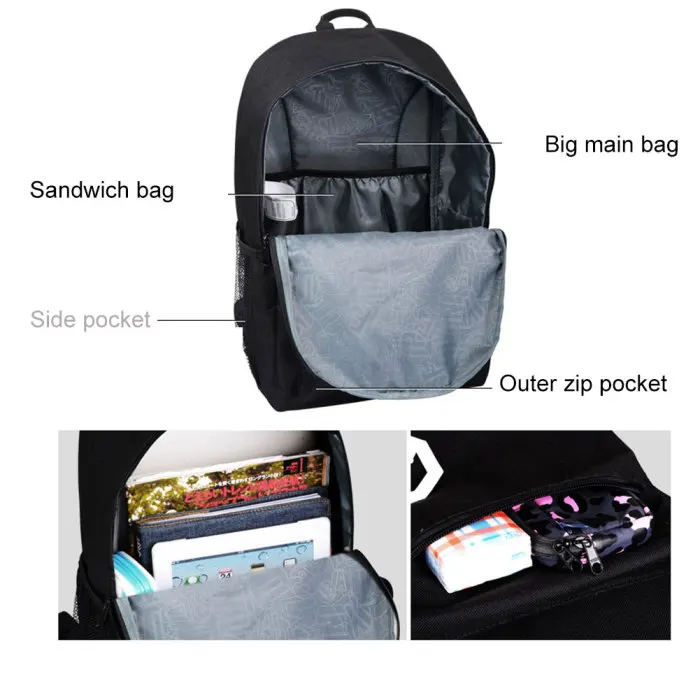 1. Printing part of anime luminous backpack longer exposed to light, the brighter luminous backpack will be in the dark, more attractive at night