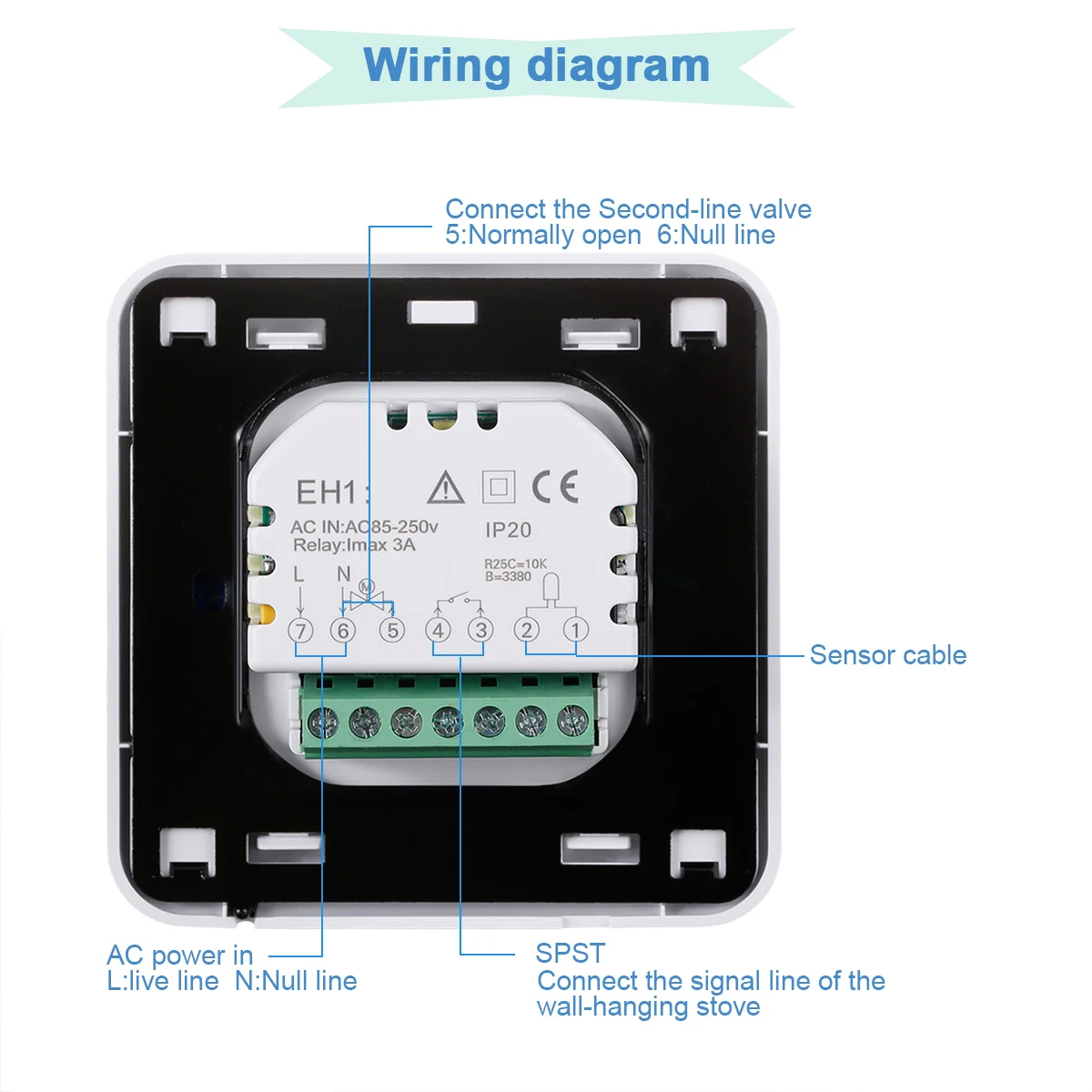 This LCD display thermostat with weekly programming adopts the latest single-chip computer control technology, and its application is the water heating equipment and the wall-hanging boiler. According to the preset temperature, the thermostat will automatically start and stop the controlled object (Water Valve, Water heating system, the wall-hanging boiler etc). This thermostat has a thinner, sleeker design, and the large square LCD screen ensures a better user experience of temperature control.