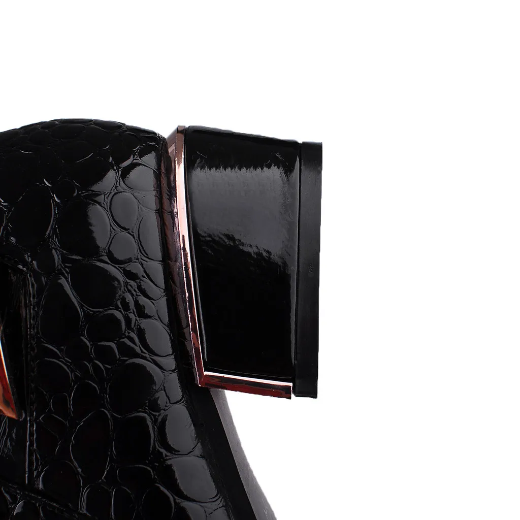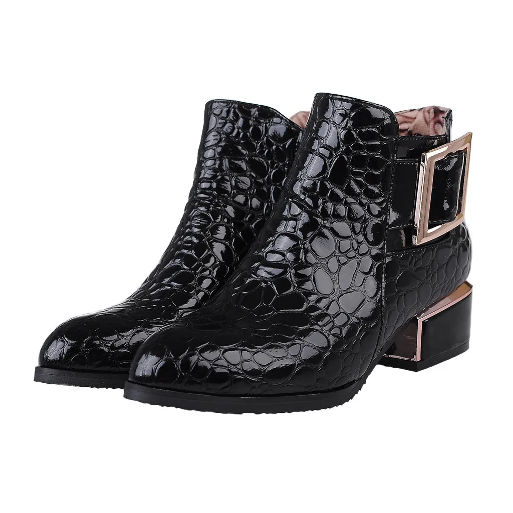 Ботильоны на толстой подошве; Сезон осень-зима; Женская обувь из лакированной кожи с острым носком в английском стиле