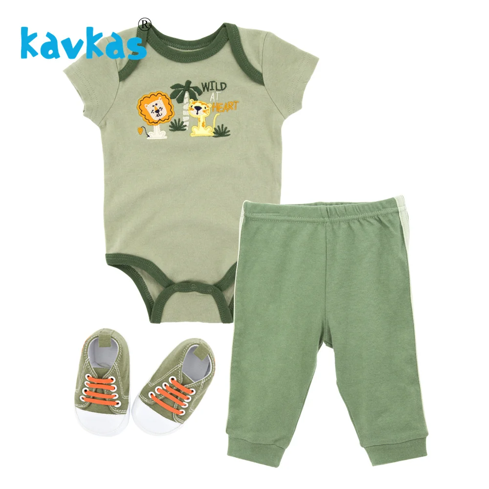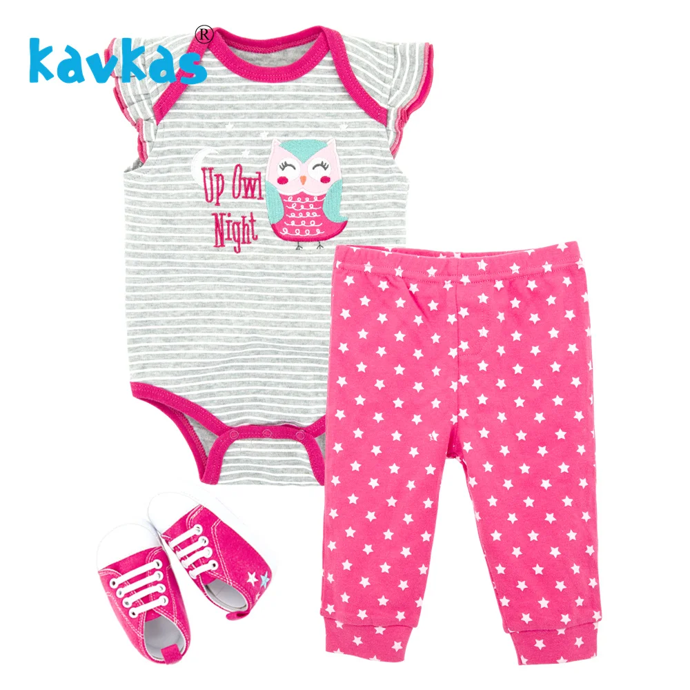 Kavkas Infant Newborn Baby Girls Clothing Set Short Sleeve Tops Romper Pants Shoes Outfits Cotton Suit Summer Sets
