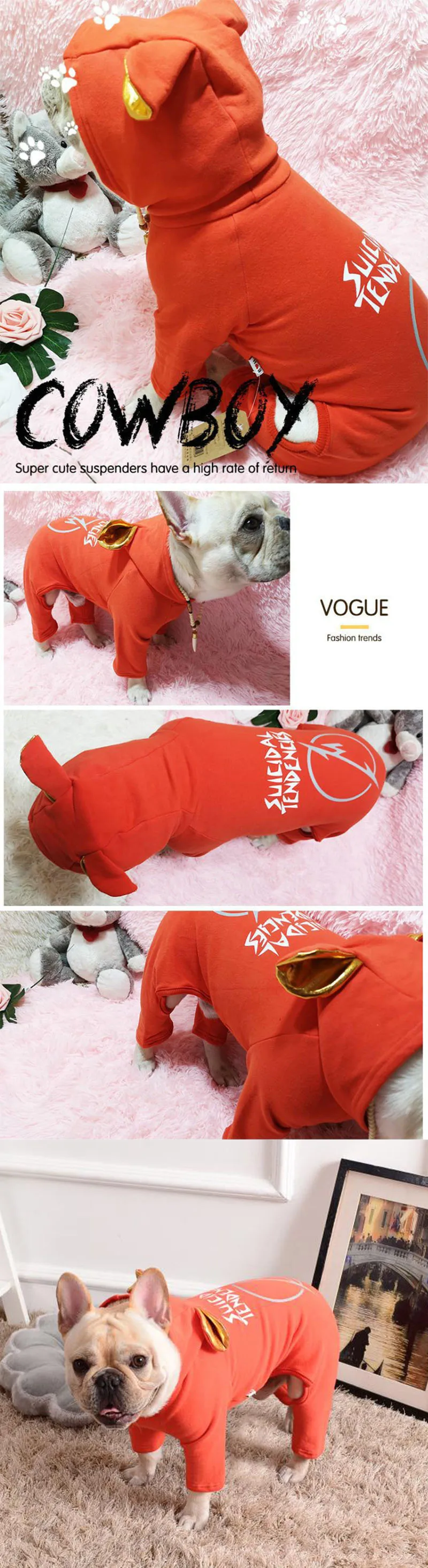 Хлопок Французский бульдог теплый комбинезон одежда для собак для маленьких собак одежда Чихуахуа мопса Милая бижутерия для ушей Кофты для щенков S-FB