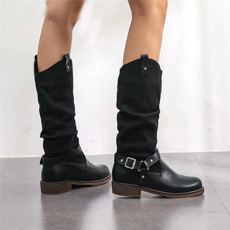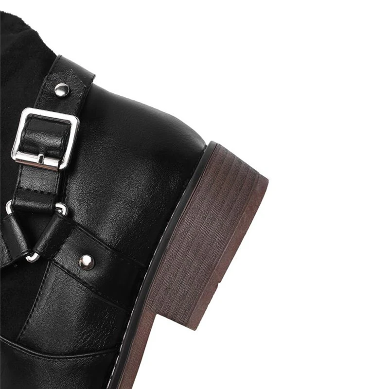 Bota Feminina; Обувь в стиле ретро на плоской подошве до колен-высокие мотоботы зимняя обувь в австралийском стиле; Элегантные рыцарские сапоги Для женщин однотонные в стиле «панк» с круглым Тео, большие размеры