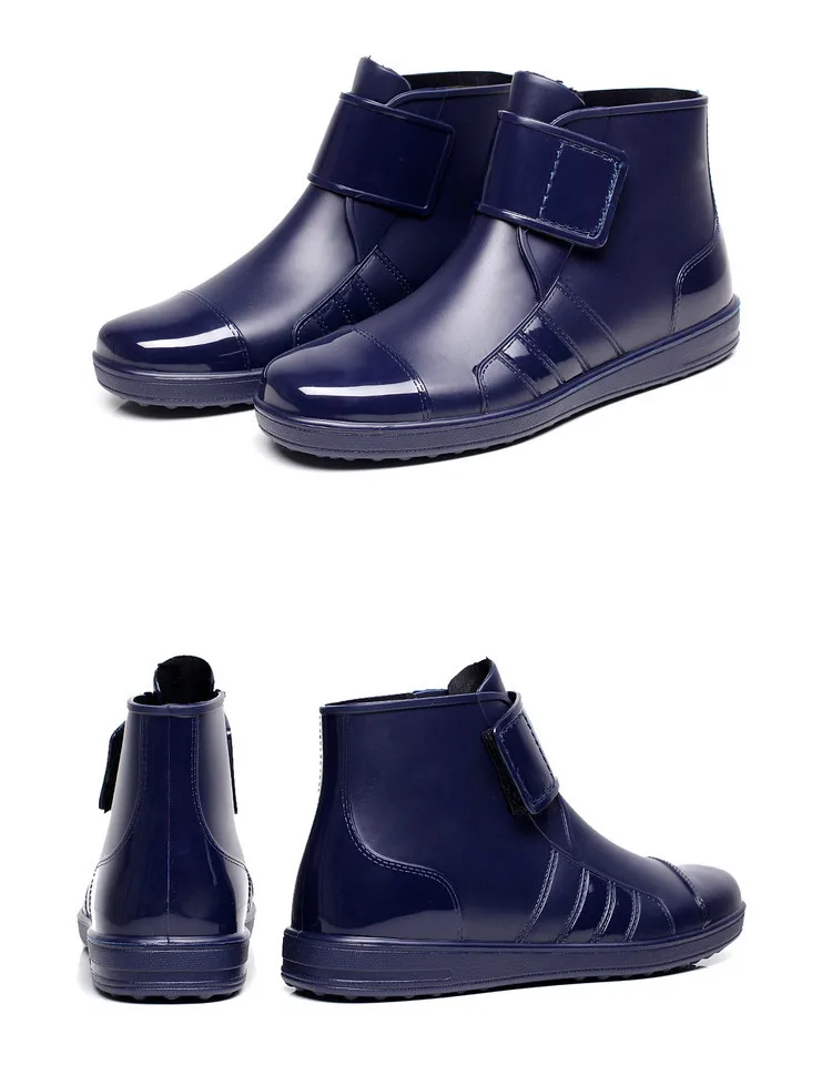 Мужские резиновые сапоги на плоской подошве; Зимняя обувь; Мужские Ботильоны; Водонепроницаемые Нескользящие теплые плюшевые мужские зимние ботинки на плоской подошве; Цвет черный, синий; Большие размеры 39 - 44