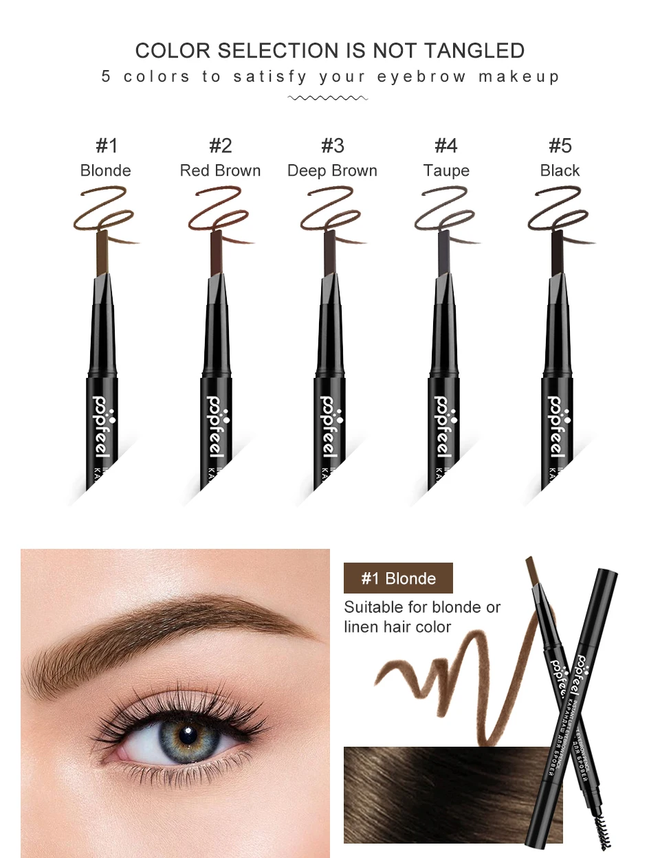POPFEEL 5 цветов оттенок макияж Авто карандаш для бровей натуральные брови + Водонепроницаемый порошок для бровей длительный макияж для глаз тени для бровей