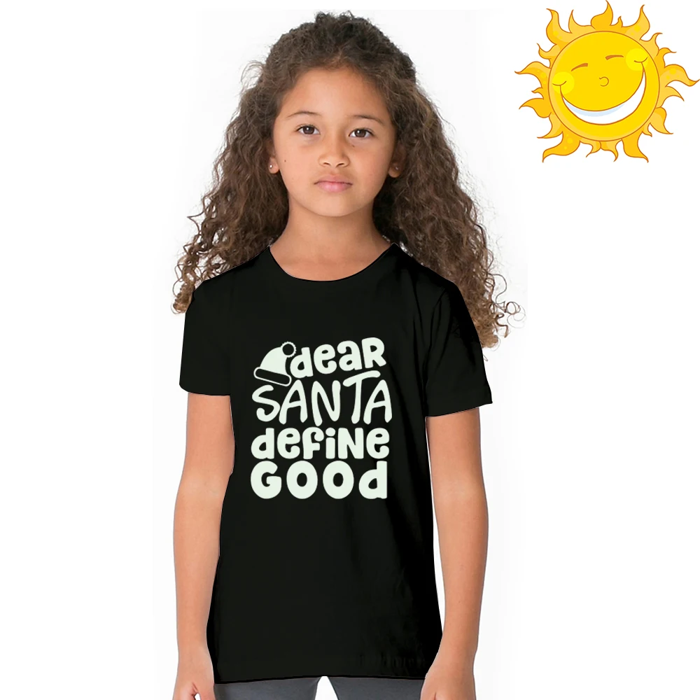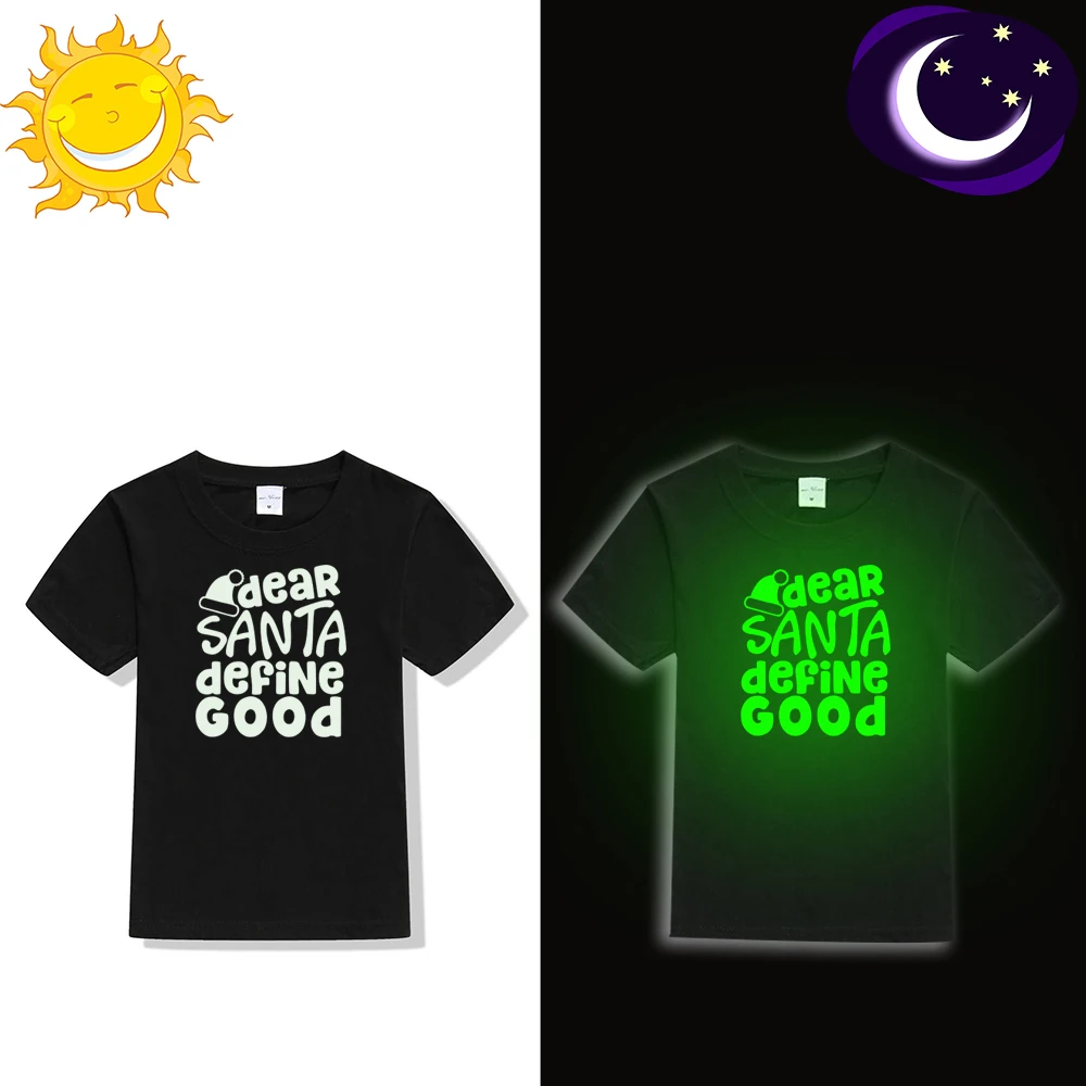 Детская светящаяся футболка с надписью «Merry Christmas»; Топы с принтом «Dear Santa»; Забавные детские футболки для мальчиков и девочек с рисунком; Серебристые футболки