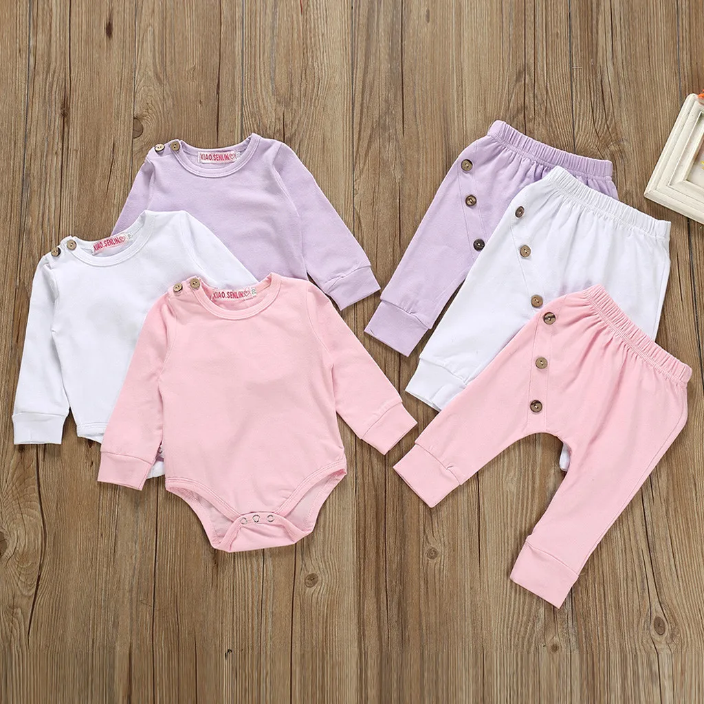 Soild Комбинезон для маленьких мальчиков и девочек, боди + штаны, комплекты одежды