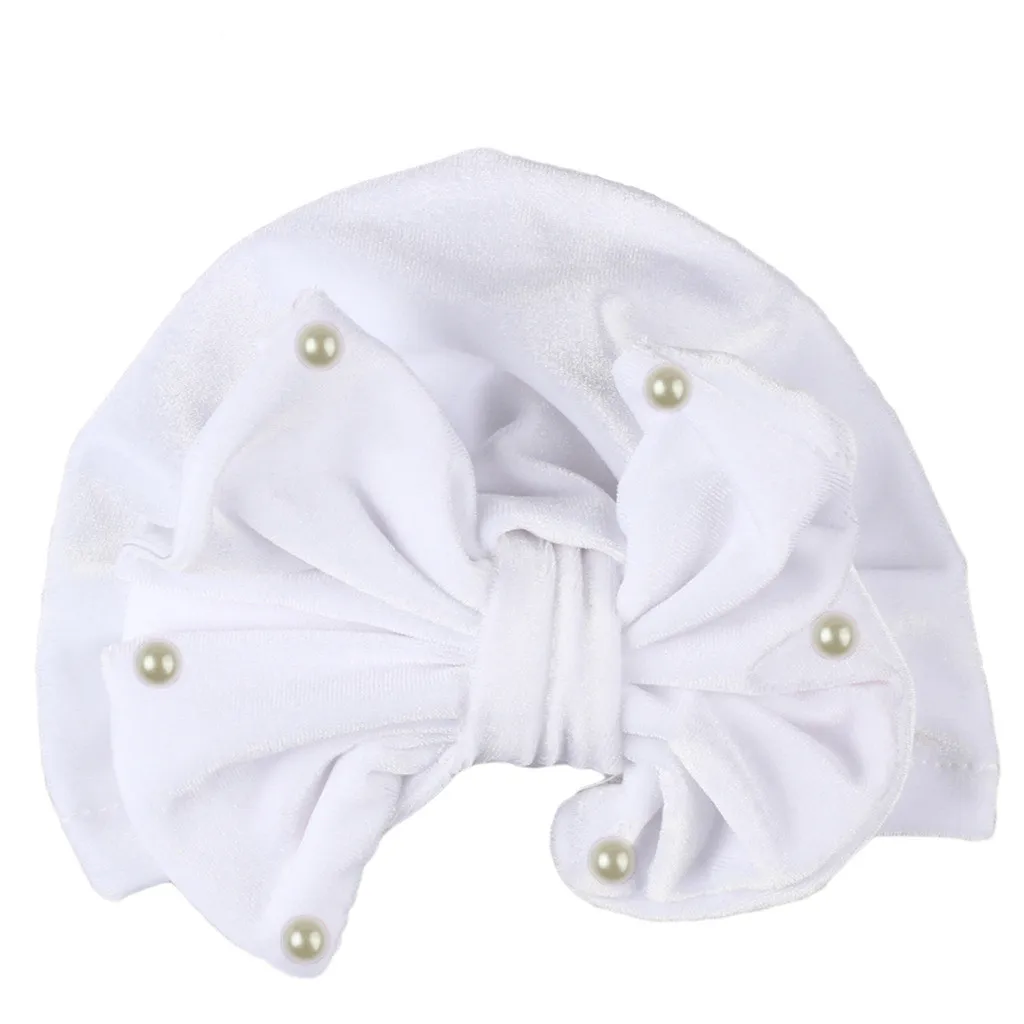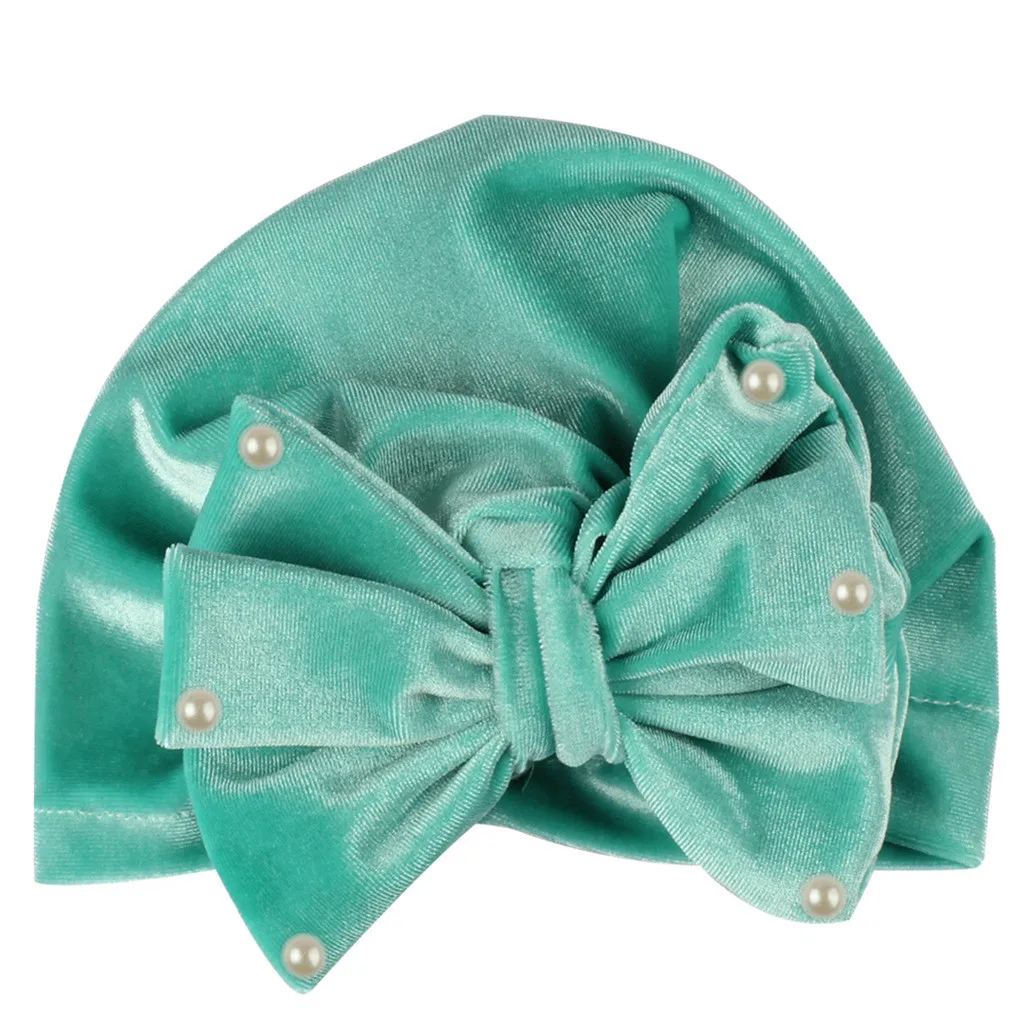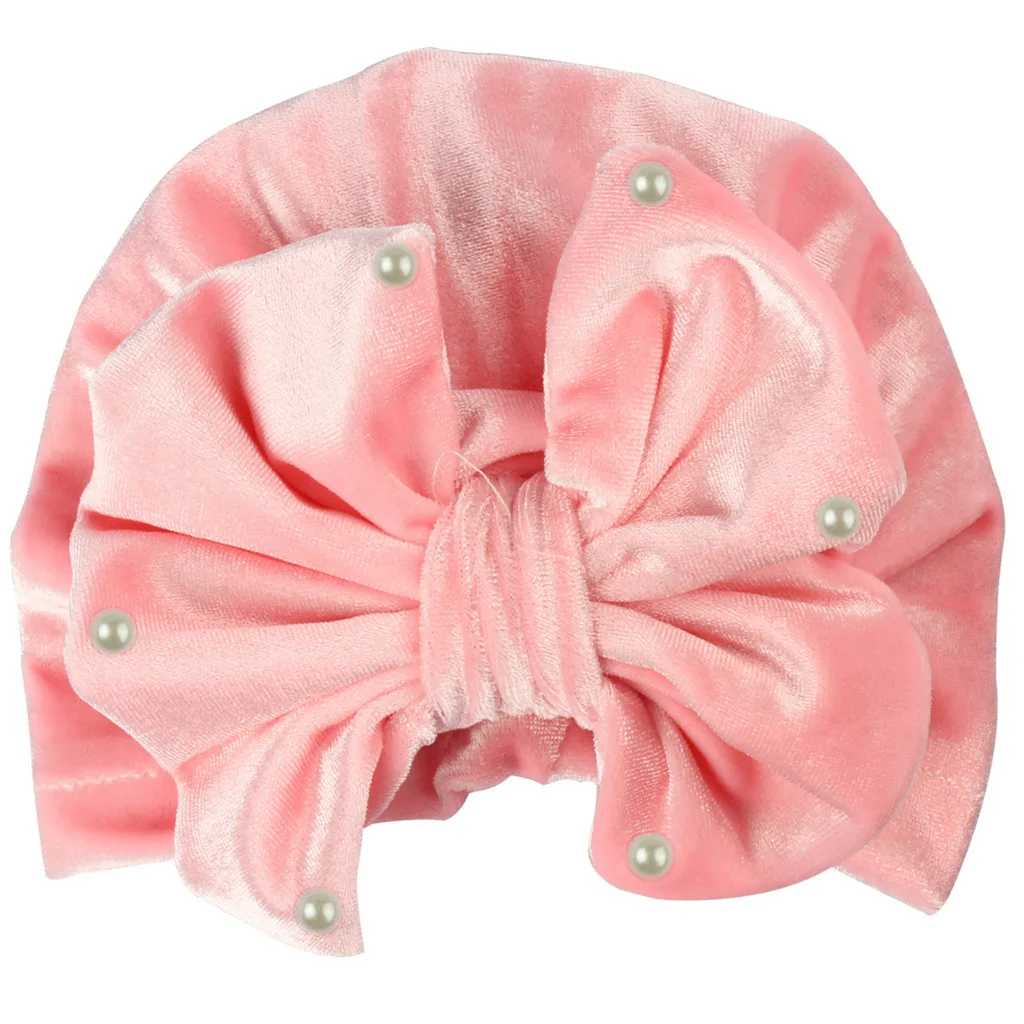 Новорожденный мальчик девочка жемчуг Pleuche завязанная шапка теплый лук шапка головной убор Кепка