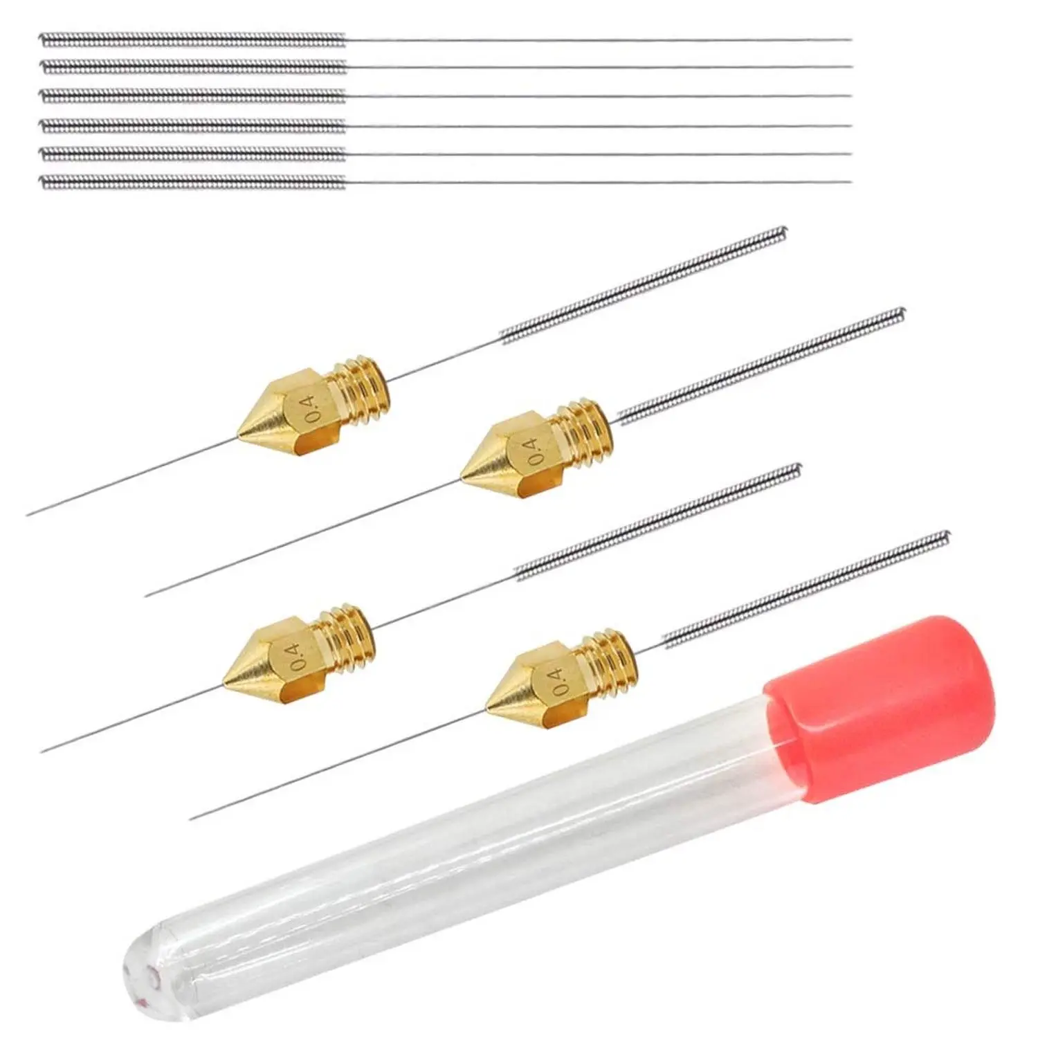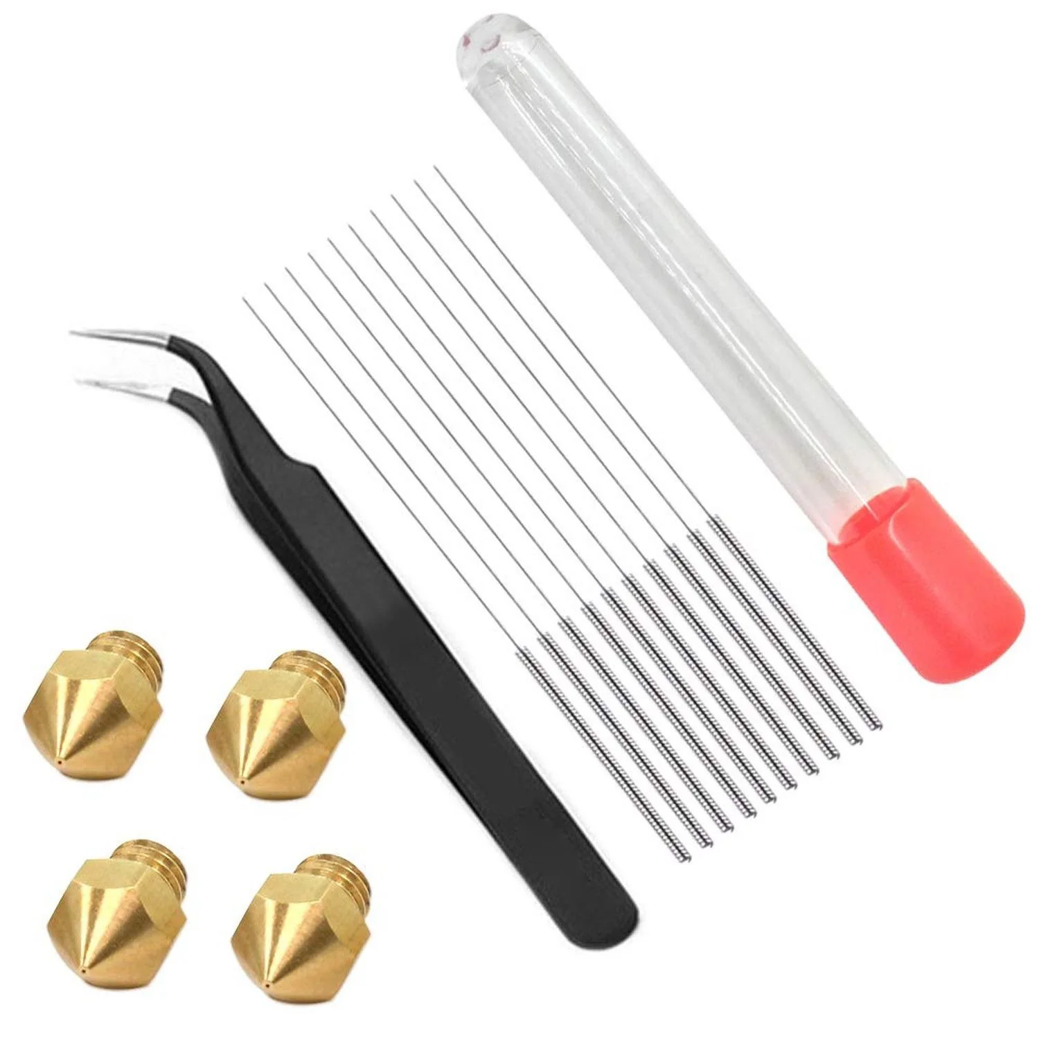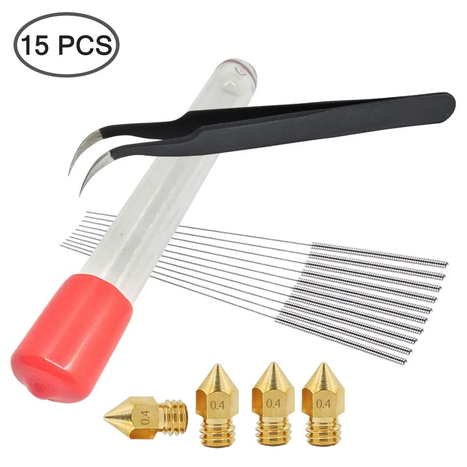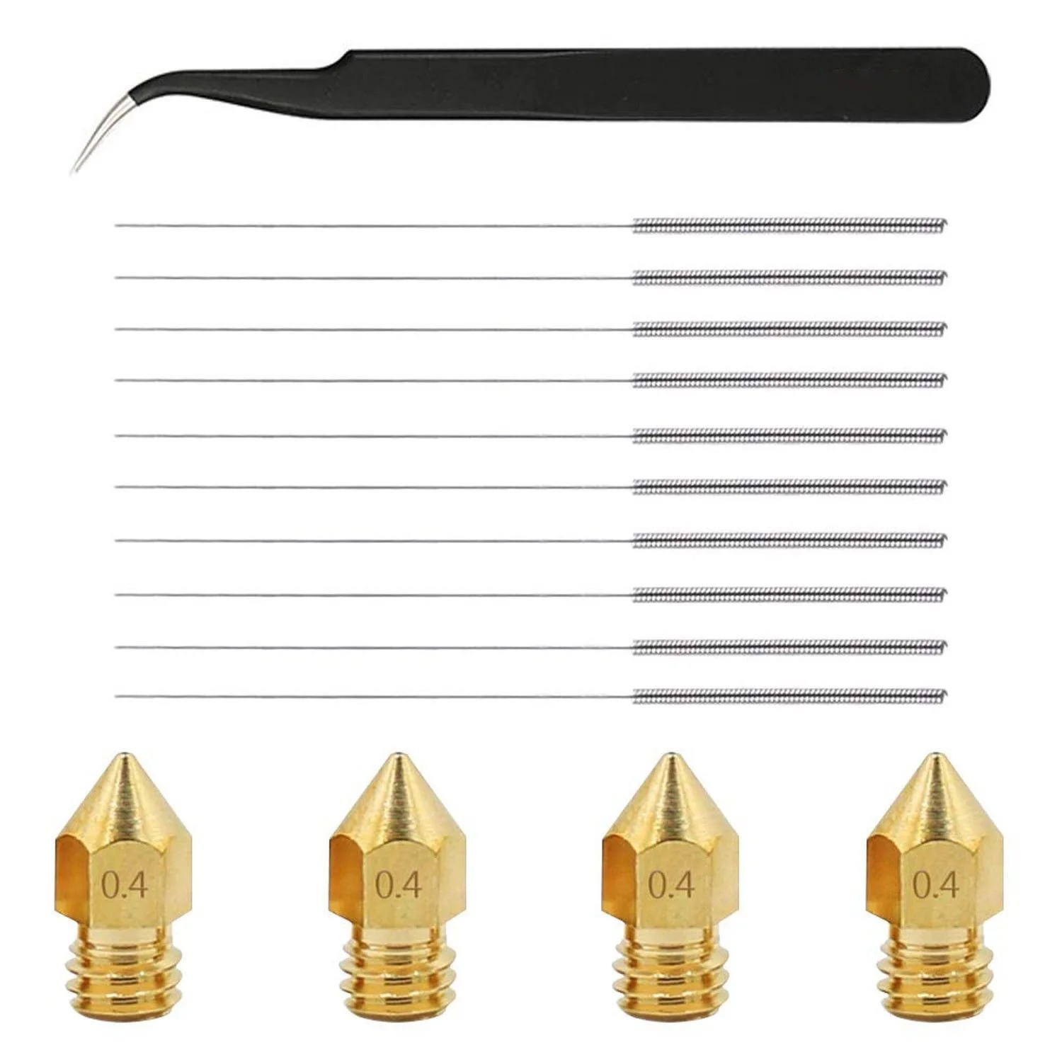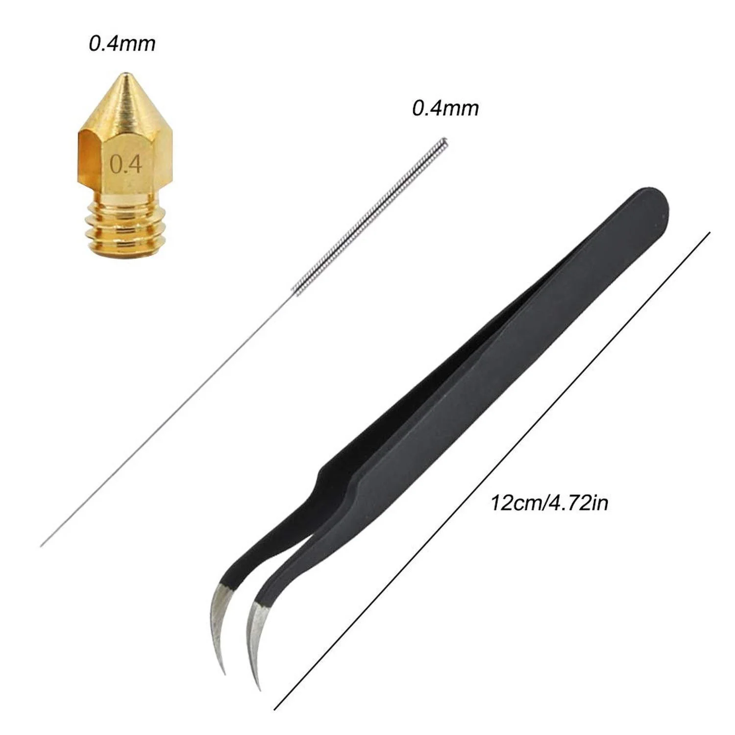 * Это набор аксессуаров для 3D-принтера, этот набор включает в себя один пинцет, четыре 0,4 мм насадок для экструдера и десять 0,4 мм чистящие иглы сопла.
