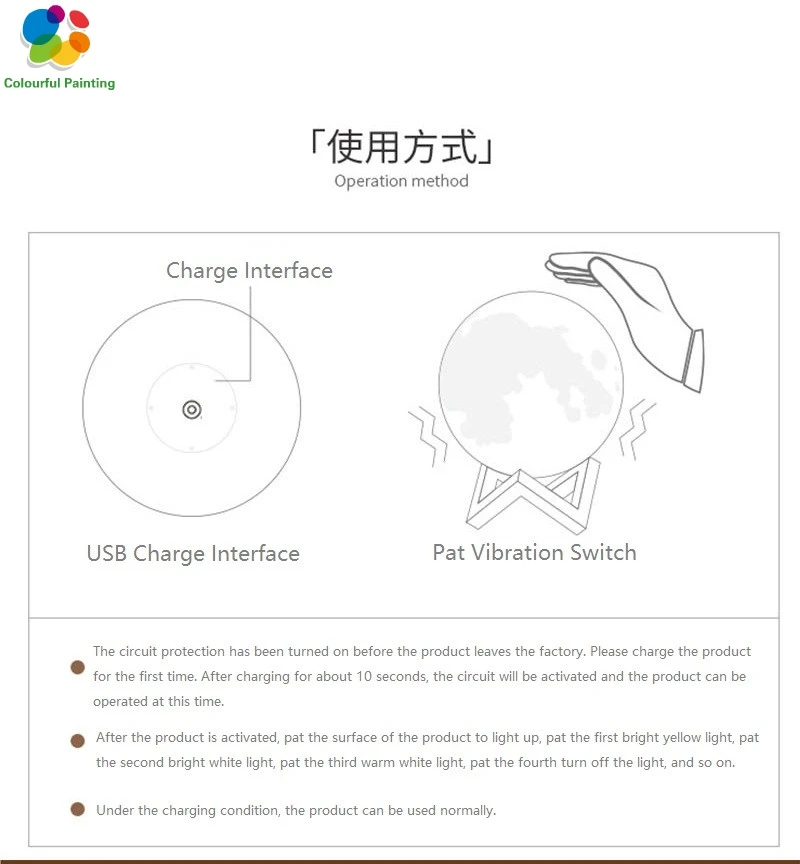 Product details: -- Hot selling 1:Crazy popular special for young people; How to use: Step 1:The circuit protection has been turned on before the product leaves the factory. Please charge the product for the first time. After charging for about 10 seconds, the circuit will be activated and the product can be operated at this time. Step 2:After the product is activated, pat the surface of the product to light up, pat the first bright yellow light, pat the second bright white light, pat the third warm white light, pat the fourth turn off the light, and so on. Step 3:Under the charging condition, the product can be used normally. Easy-to-Use,Easy-to-Carry!