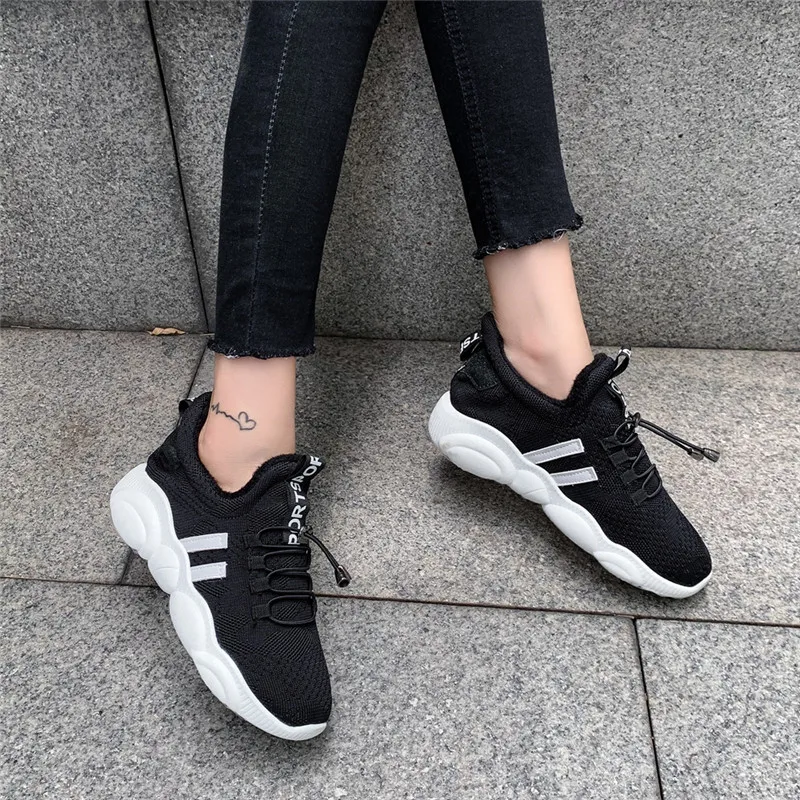 Кроссовки-носки женские Вулканизированная подошва вязаные без застежки лоферы
