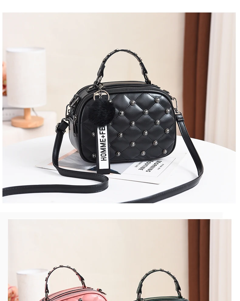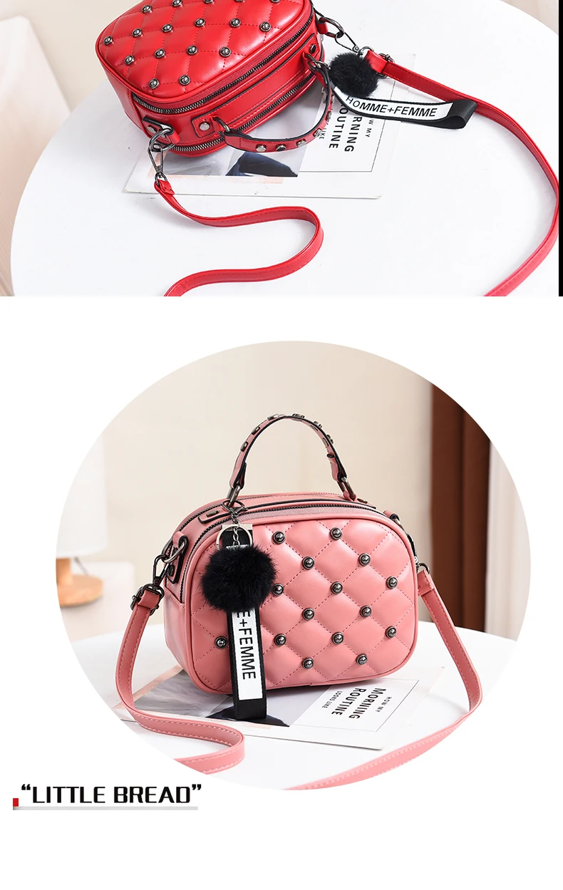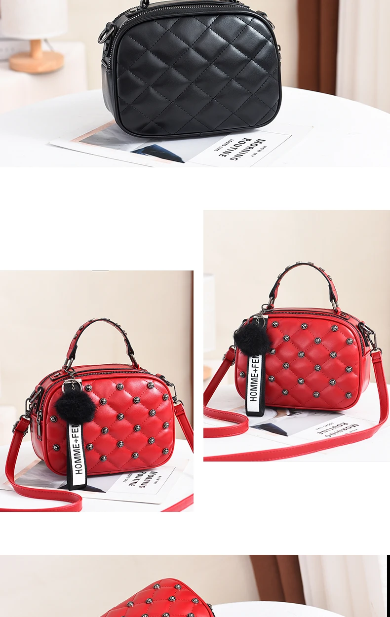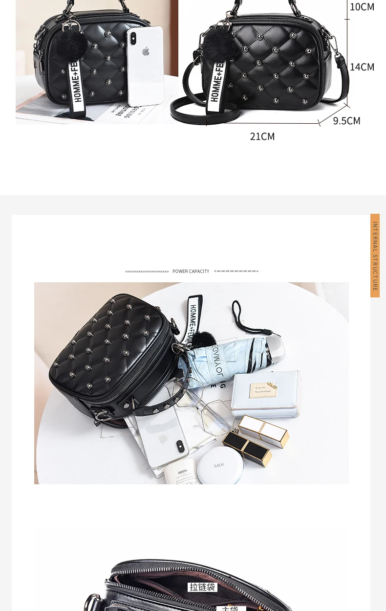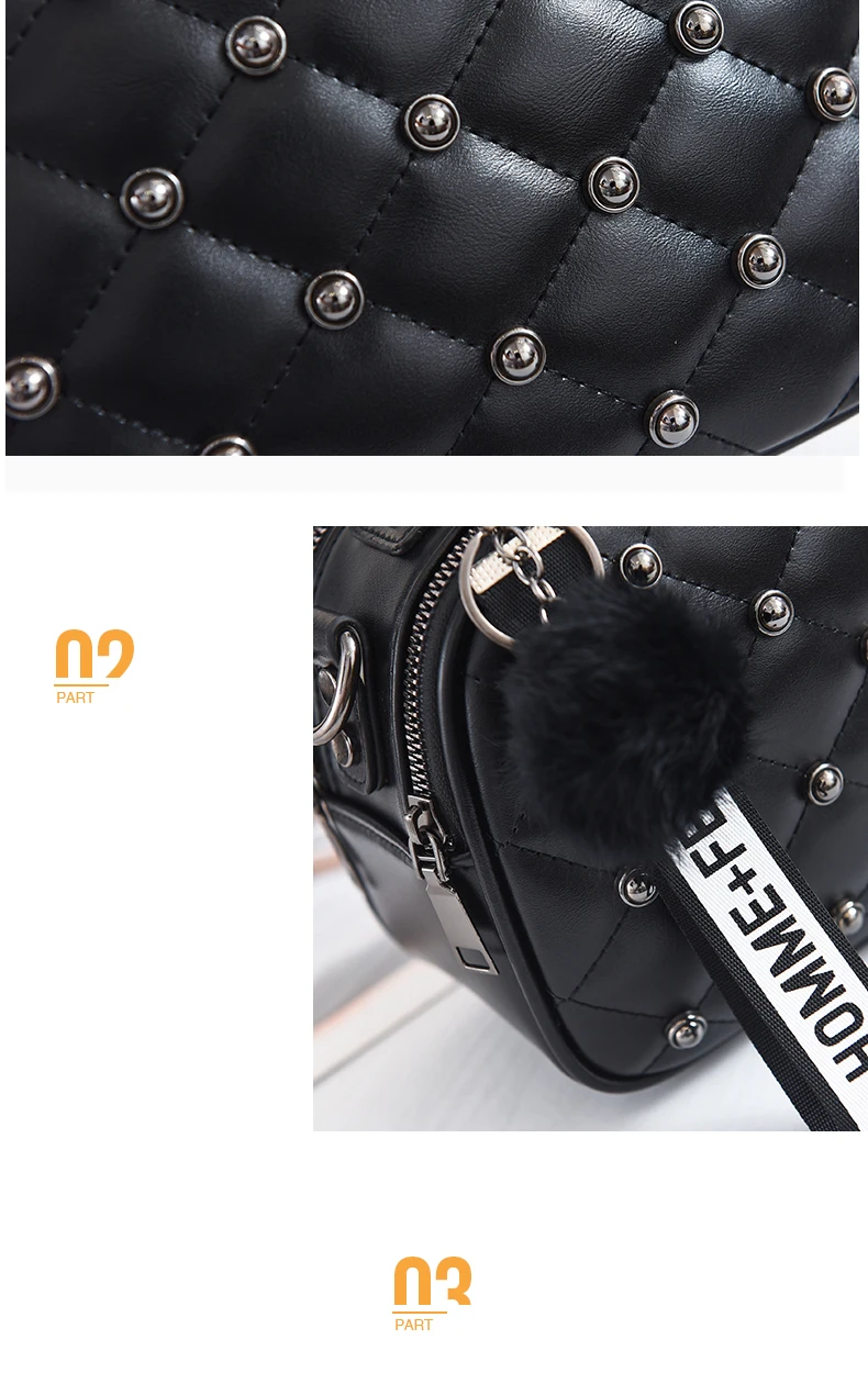 2019 роскошный Алмазный наплечник сумки для женщин из искусственной кожи с заклепками женская сумка через плечо двойная молния Сумочка Bolso Mujer