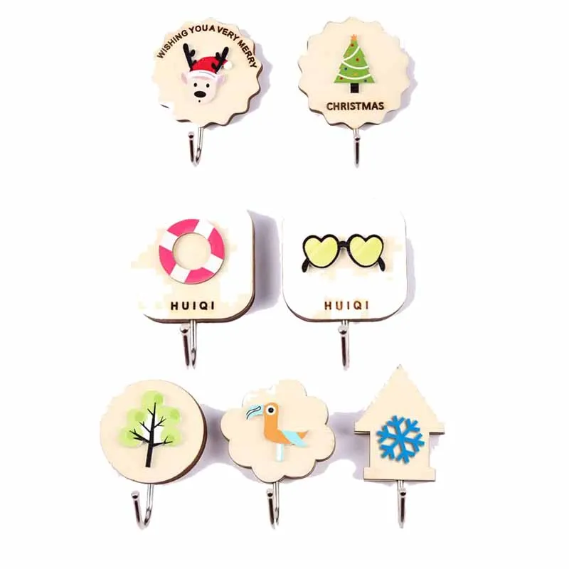 Название: мультяшный деревянный крючок. Материал: дерево + нержавеющая сталь. Размер: около 5 см. Описание: ручная работа, без сверления, расслабленный, безопасный и безопасный.