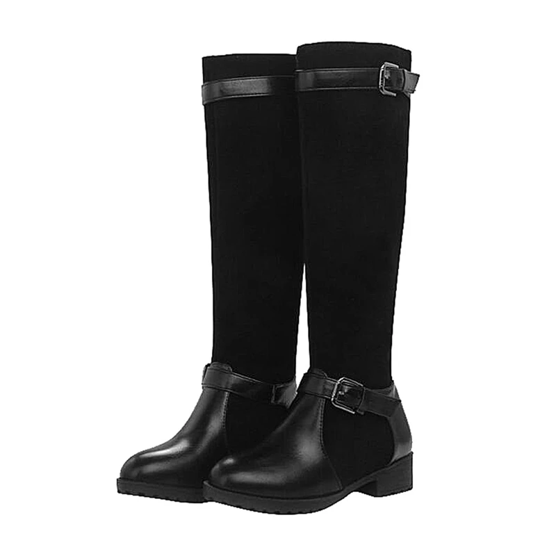 Женские теплые сапоги на квадратном каблуке otines Mujer, повседневные длинные сапоги до колена с пряжкой на ремешке в стиле ретро, зима 2019