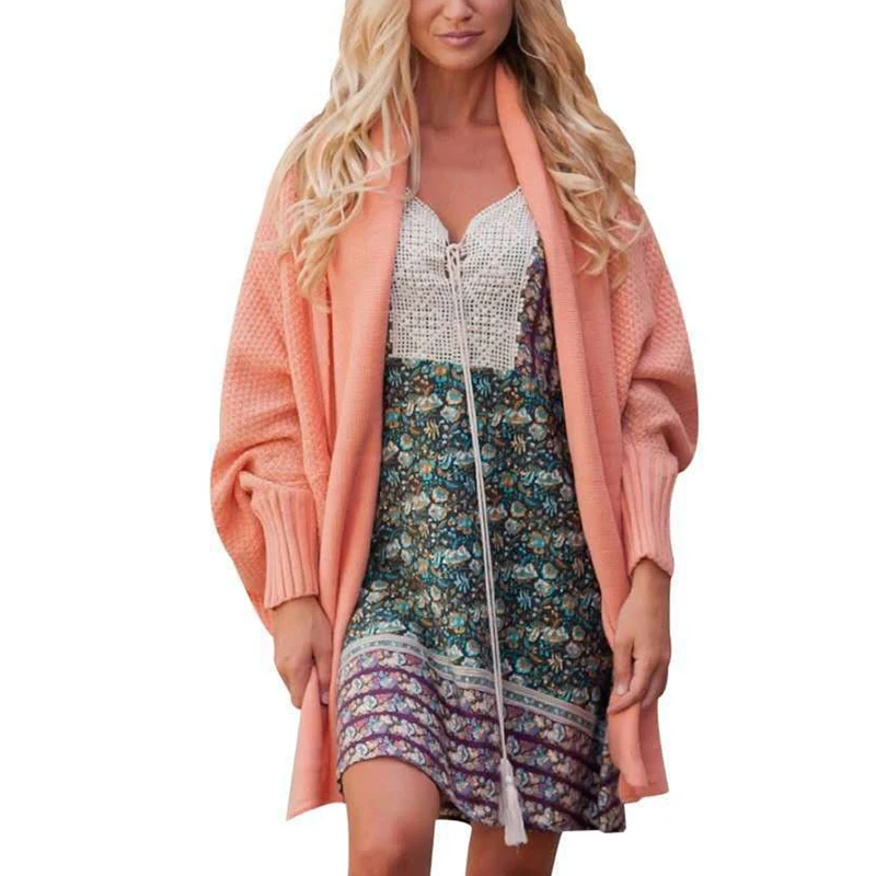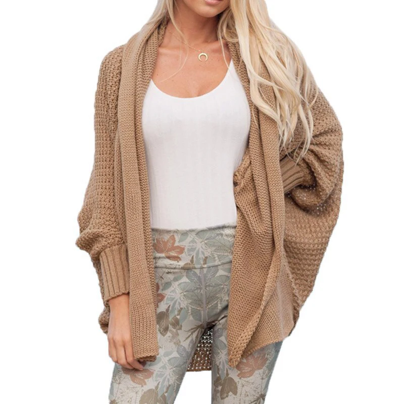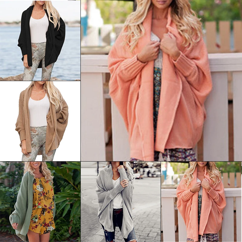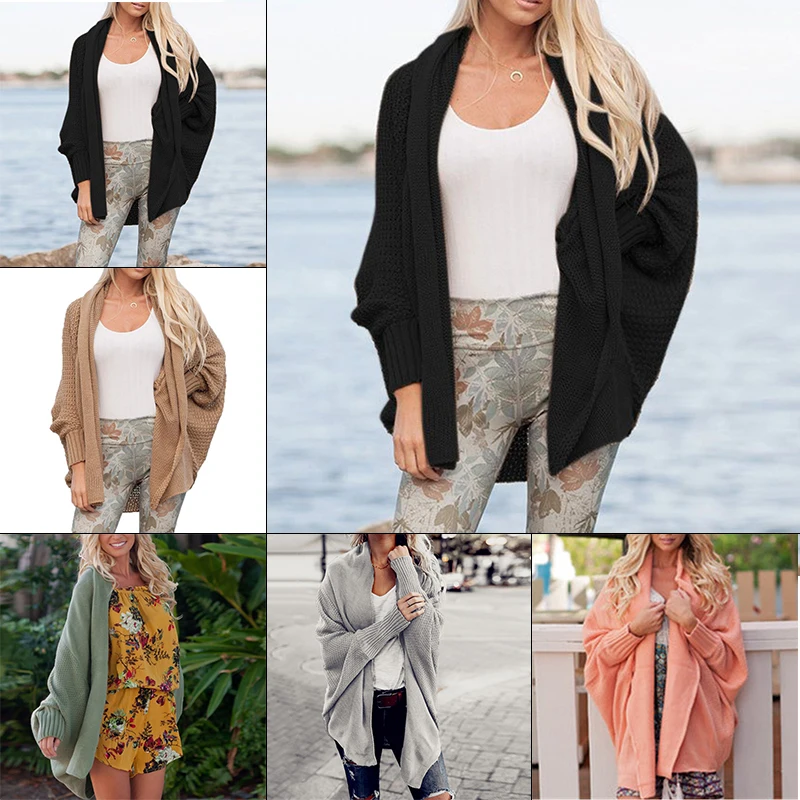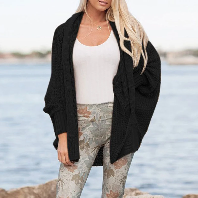 * Описание товара: рукав «летучая мышь», свитер-кардиган, топы, свободный крой, сплошной цвет