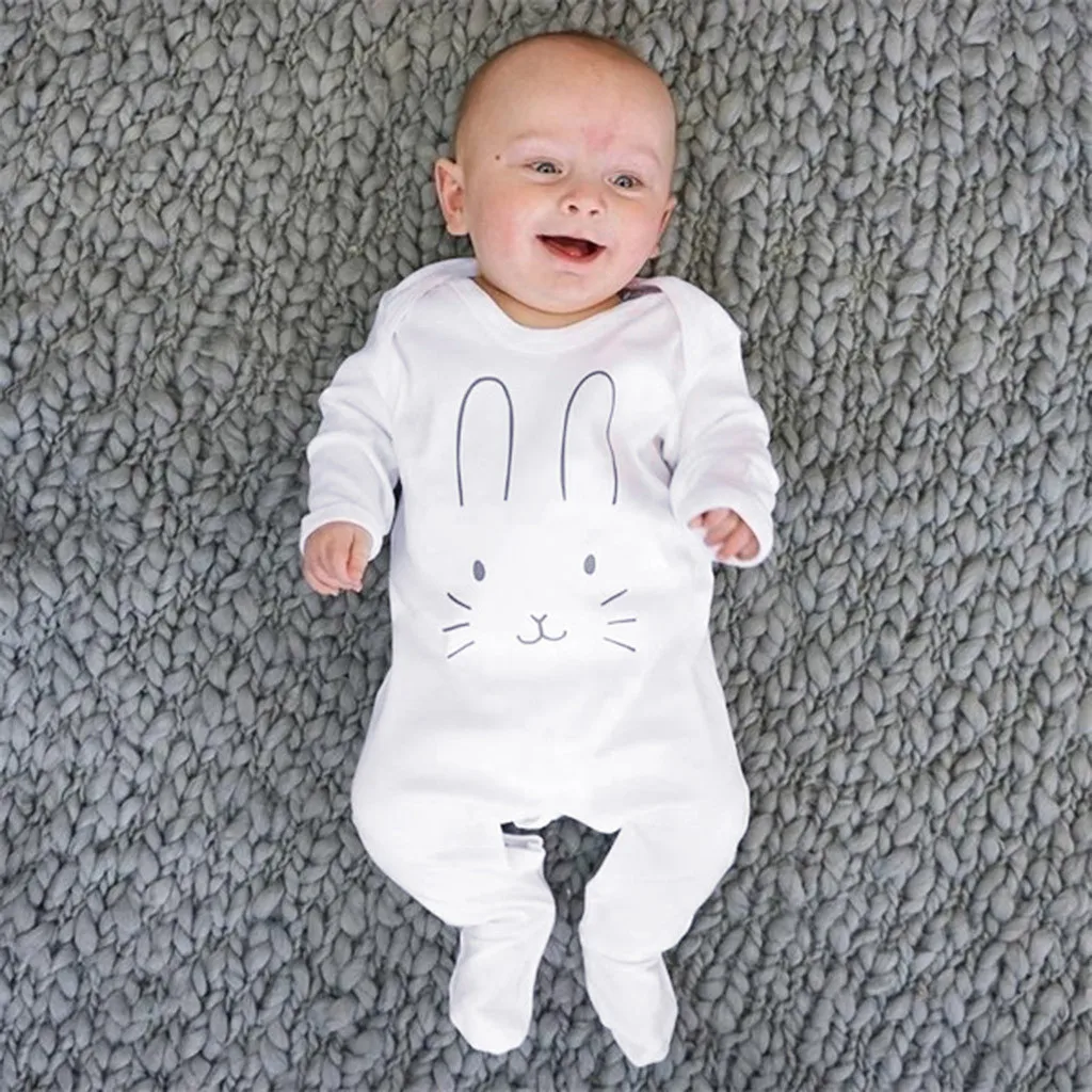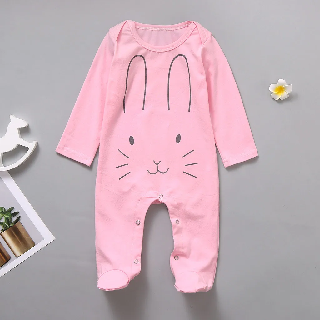 Newborn Infant Baby Girls Boys Long Sleeve Rabbite Cartoon Print Romper Jumpsuit