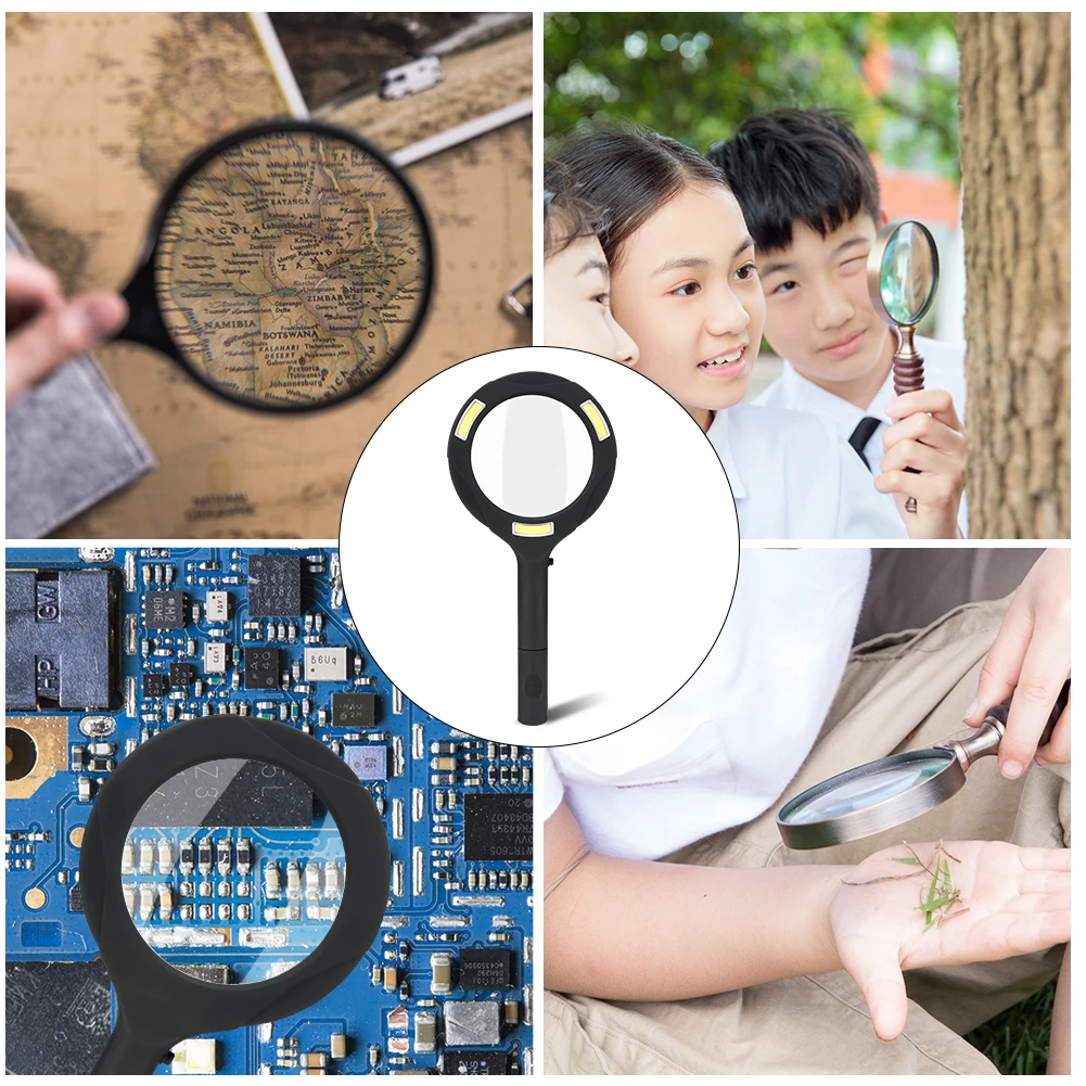 Это увеличительное стекло-отличный подарок для пожилых людей и малышей. Идеально подходит для просмотра мелких деталей в книгах, чтения газет, документов, журналов, карт, марок, электроники, монет,Растения, украшения, миниатюры, бутылки для таблеток, ремесла и многое другое.