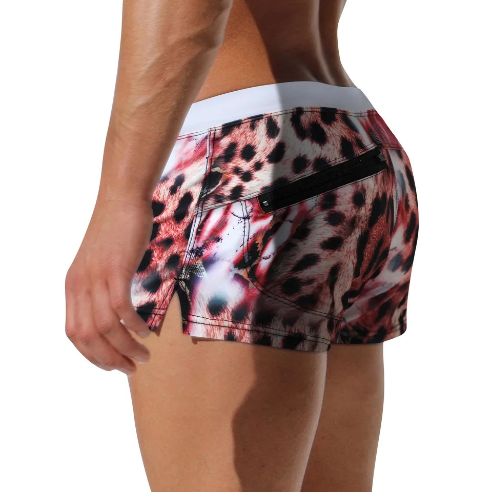 Мужской купальный костюм maillot de bain с карманами и бабочкой на молнии, купальный костюм homme zwembroek herenleopard, купальный костюм, пляжные шорты, 337