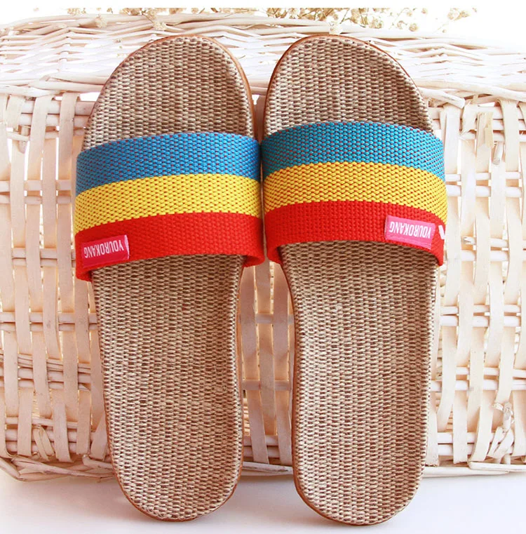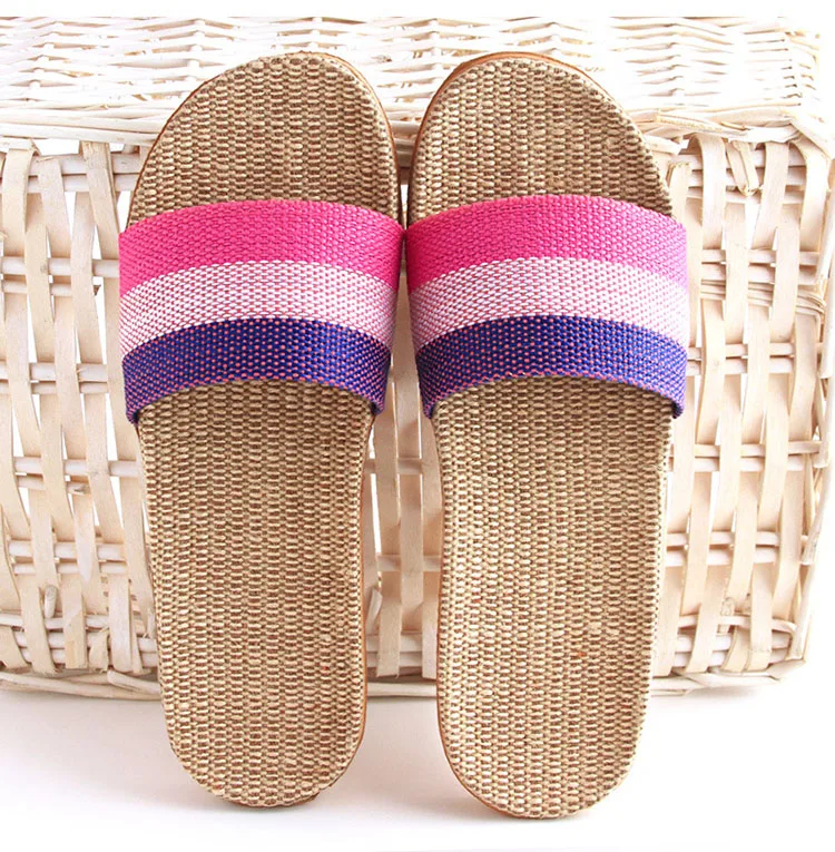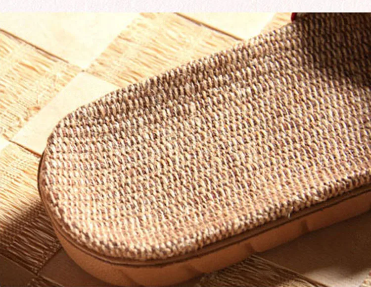 Женские пляжные шлепанцы на плоской подошве; Вьетнамки; Женская летняя сандалии 2019 новые тапочки унисекс из льна в винтажном стиле тростника трава ткачество