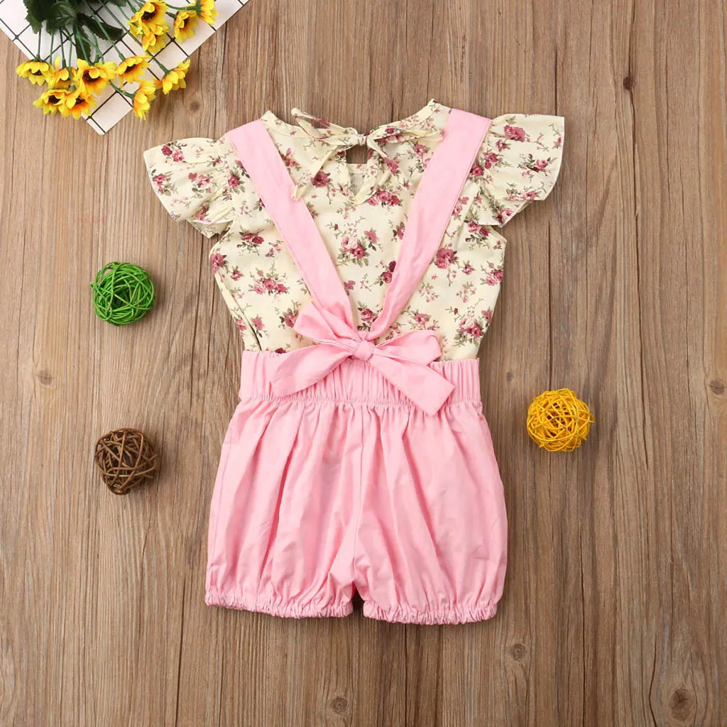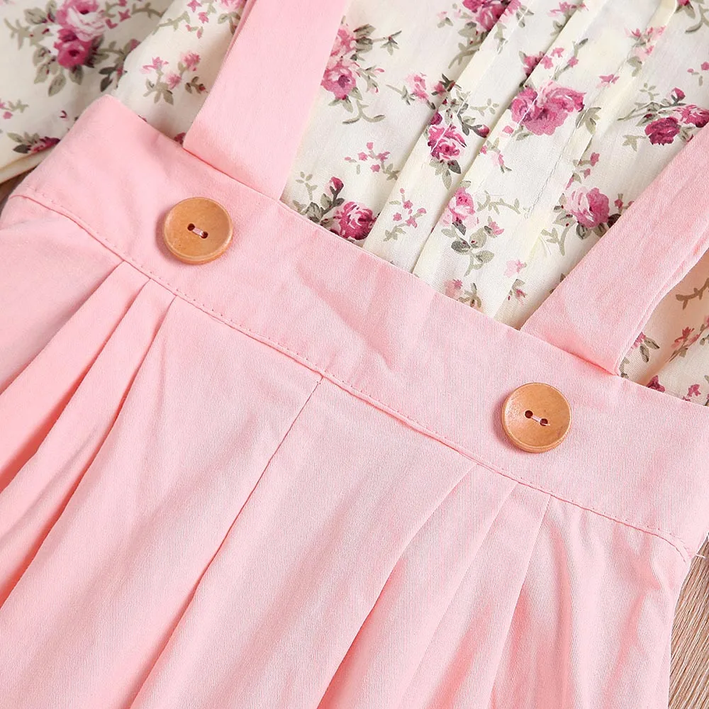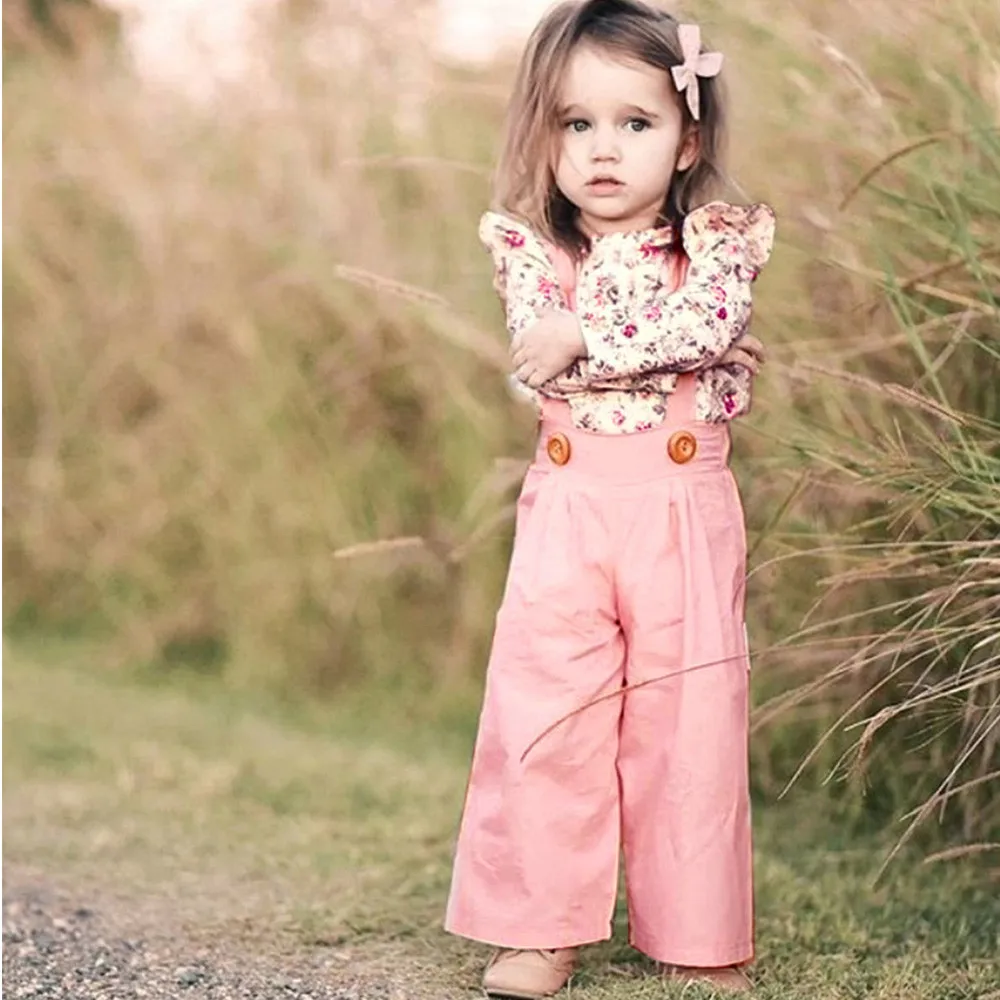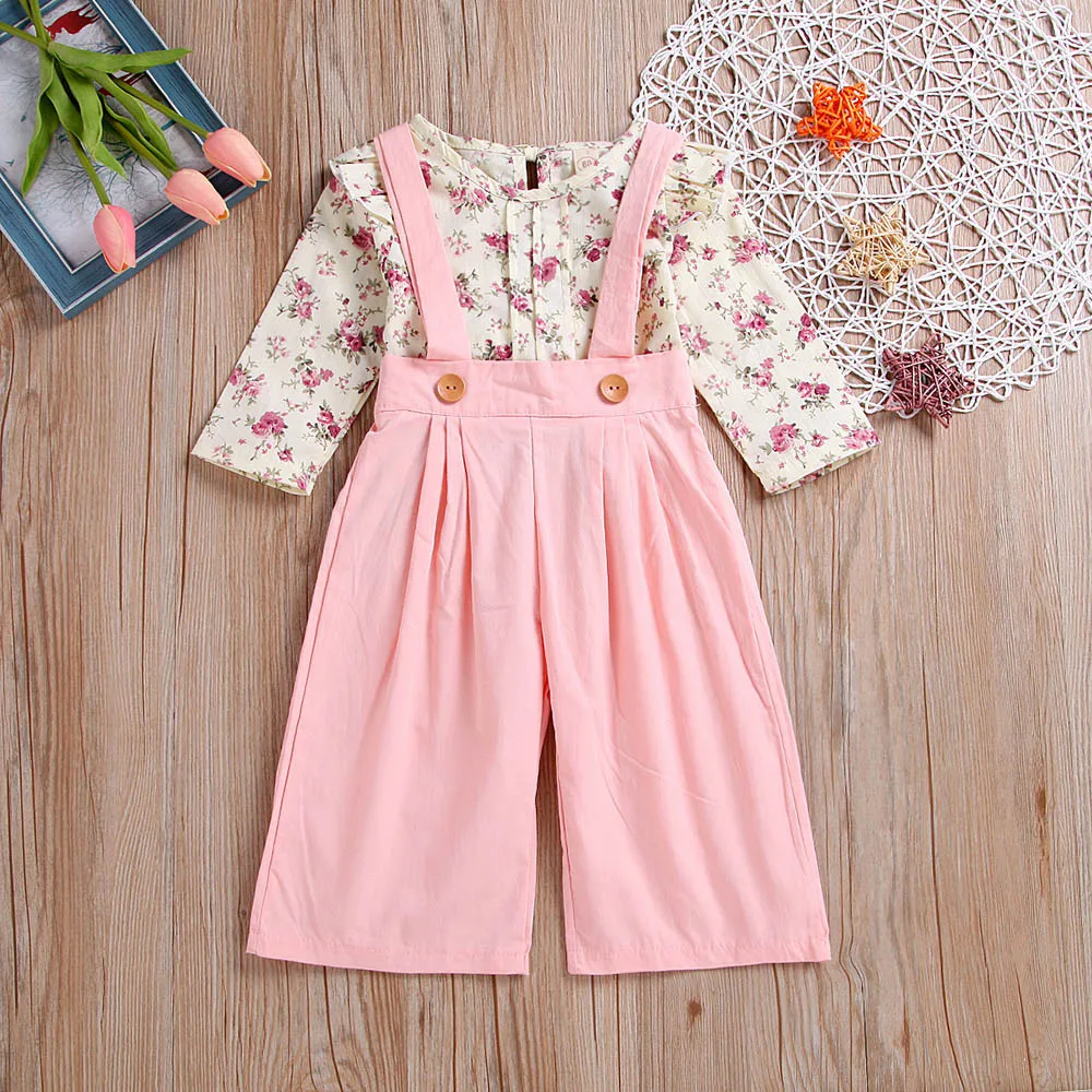 Toddler Baby Girls Sleeveless Floral Tops+Solid Overalls Pants Clothes Outfits