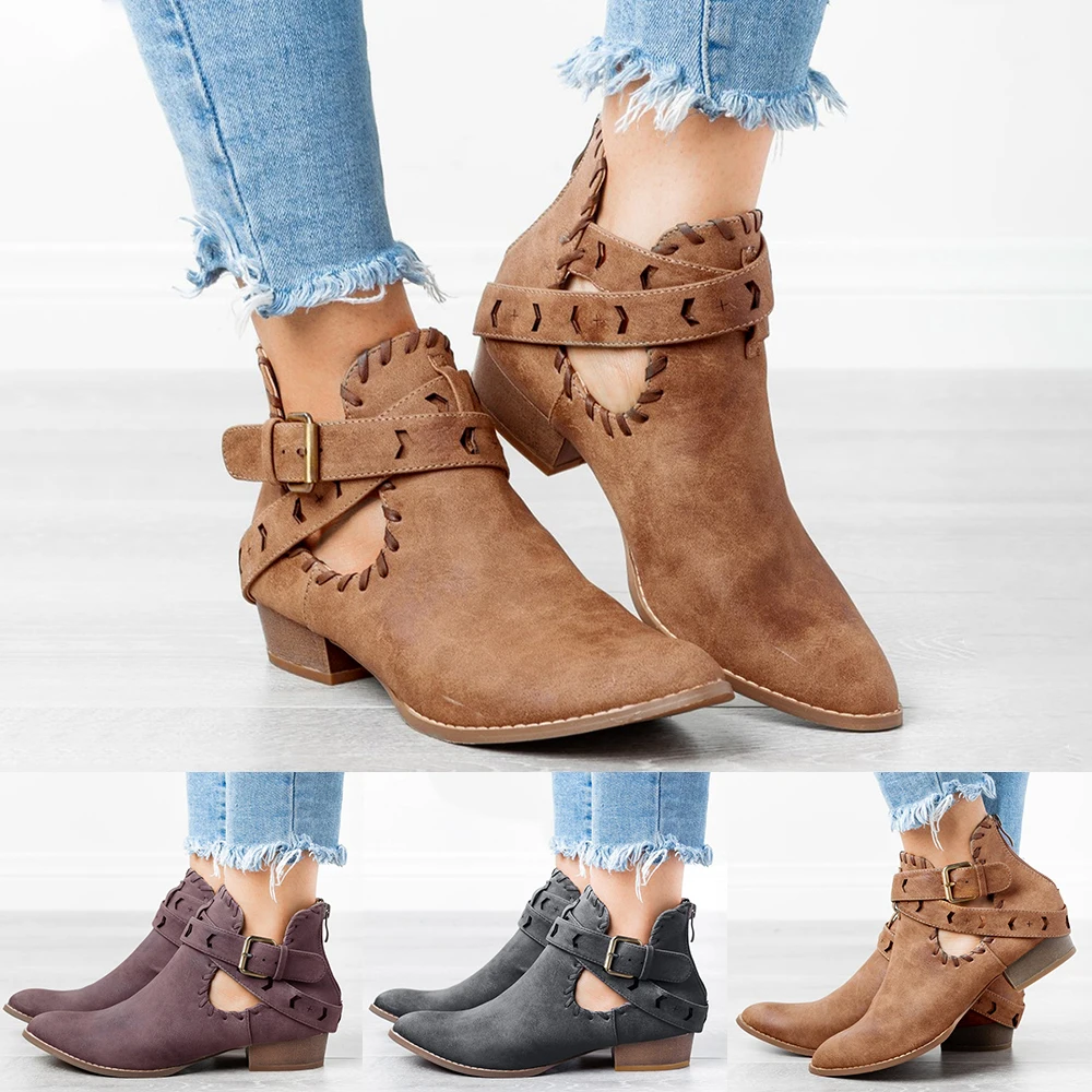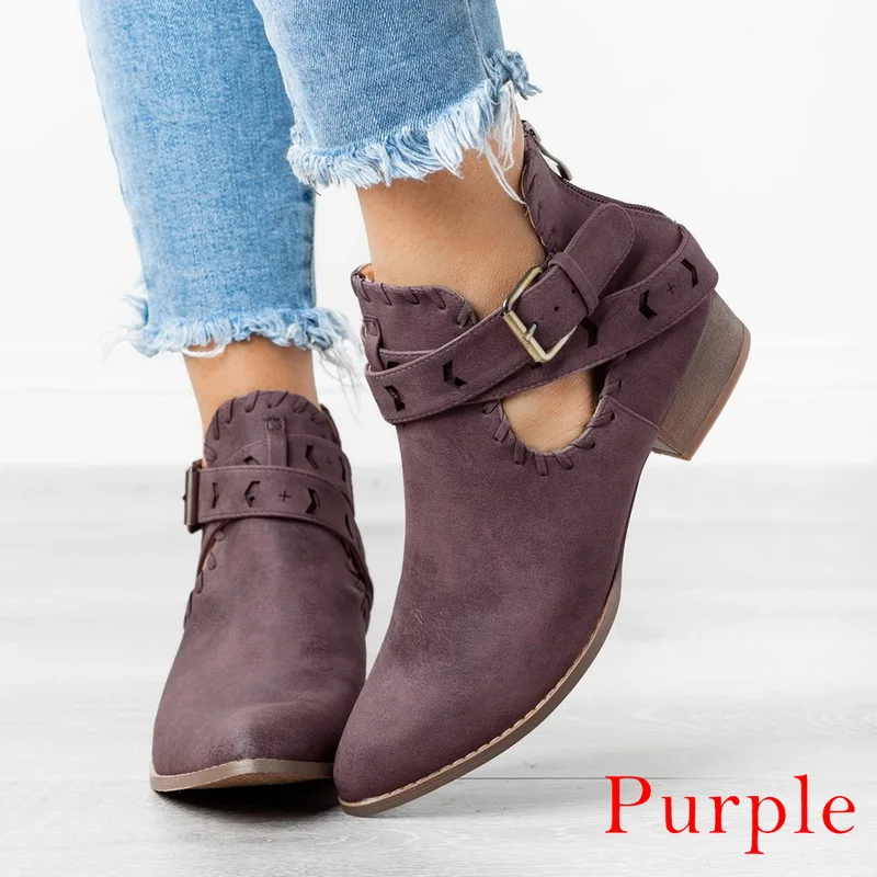 Qianruiti Botas Mujer Leather Suede Low Heel Ankle Boots For Women Autumn Shoes Casual Stone-Studded Buckle Straps Bota Feminina | Обувь