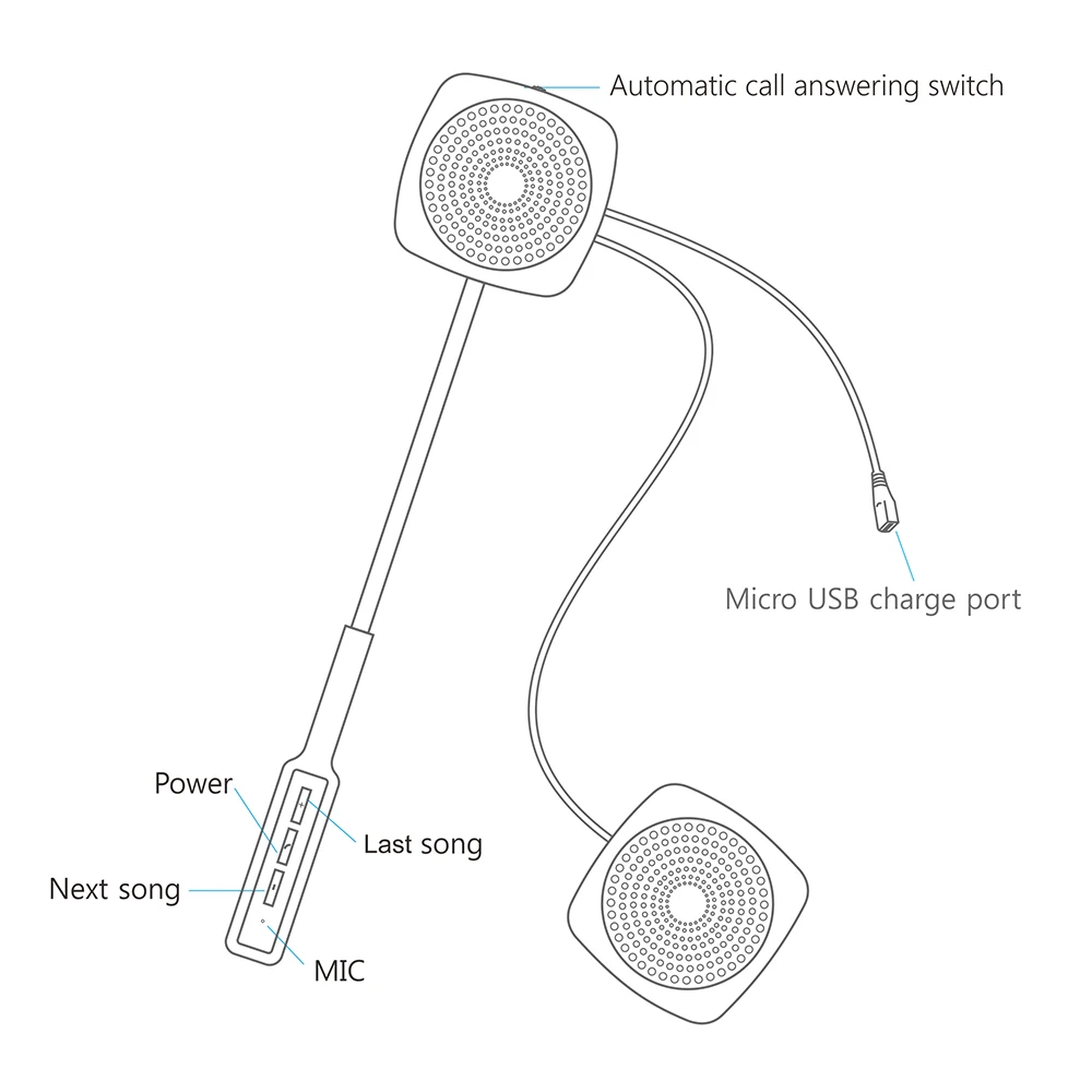 Эти беспроводные наушники BT специально разработаны для мотоциклистов, чтобы слушать музыку и принимать звонки, с отличным качеством звука и линейным контролем для регулировки громкости и переключения песен, это довольно практично. С микрофоном, функцией автоматического ответа на звонки без рук, вы можете наслаждаться беспроводным разговором во время вождения. Встроенный литий-ионный аккумулятор 180 мАч обеспечивает длительное время работы в режиме ожидания.