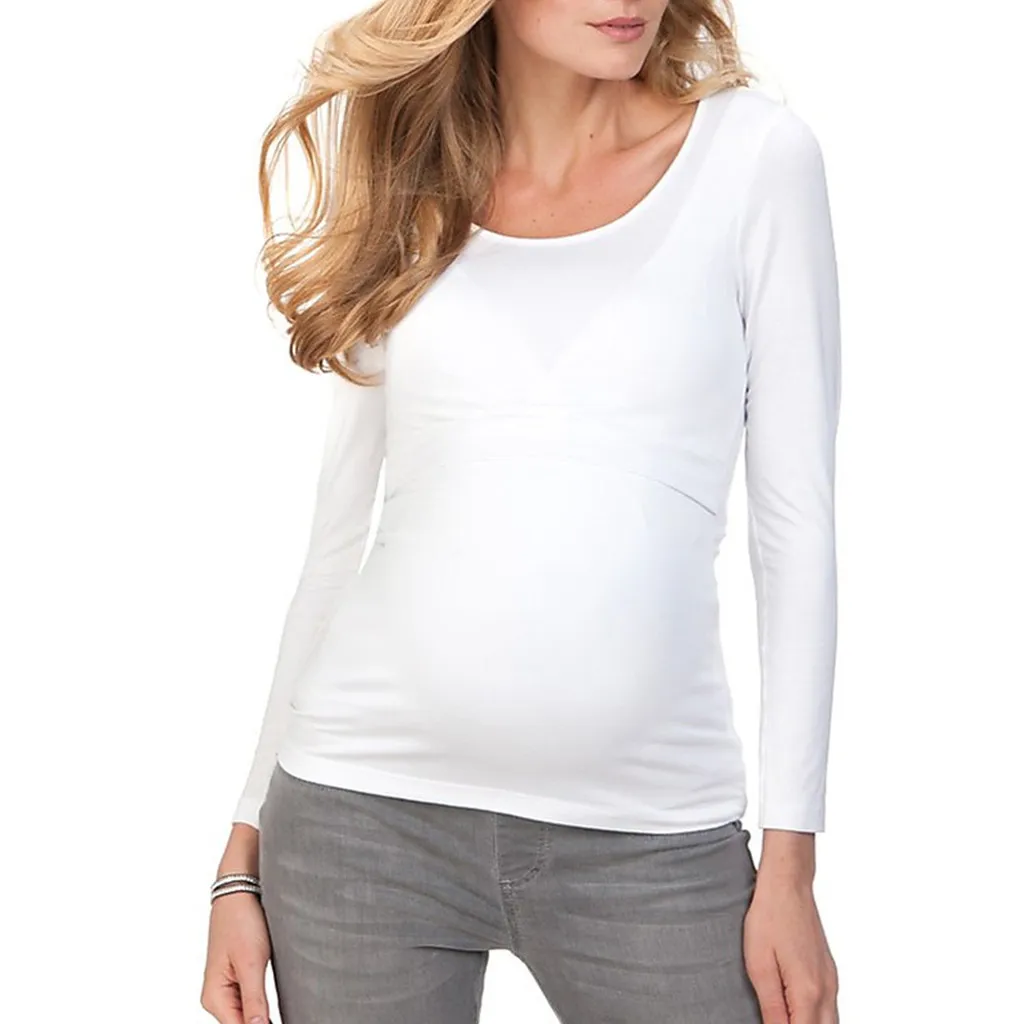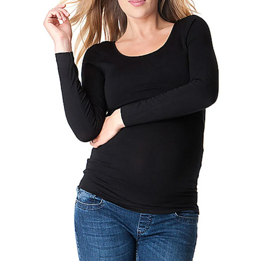 Женские топы с длинными рукавами и круглым вырезом для беременных Обратите внимание что небольшая разница в цвете считается приемлемой. Это может быть связано с положением источника света и с настройками экрана.