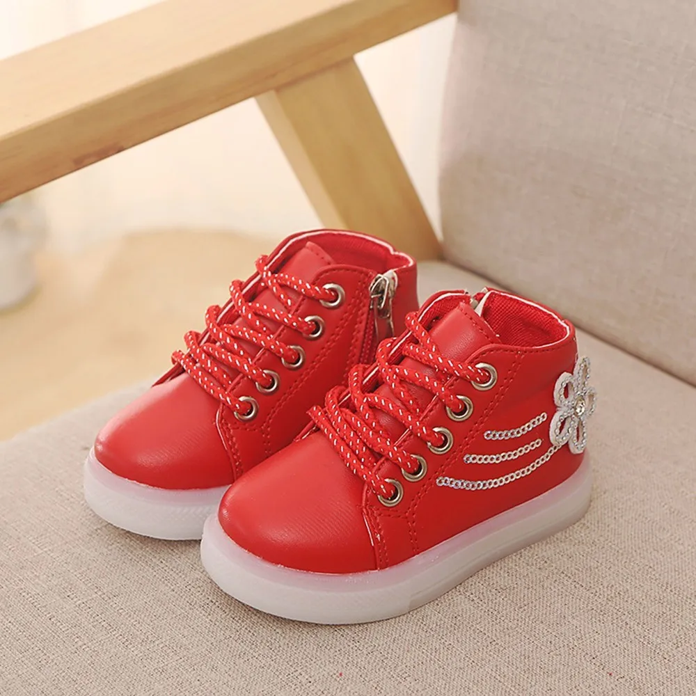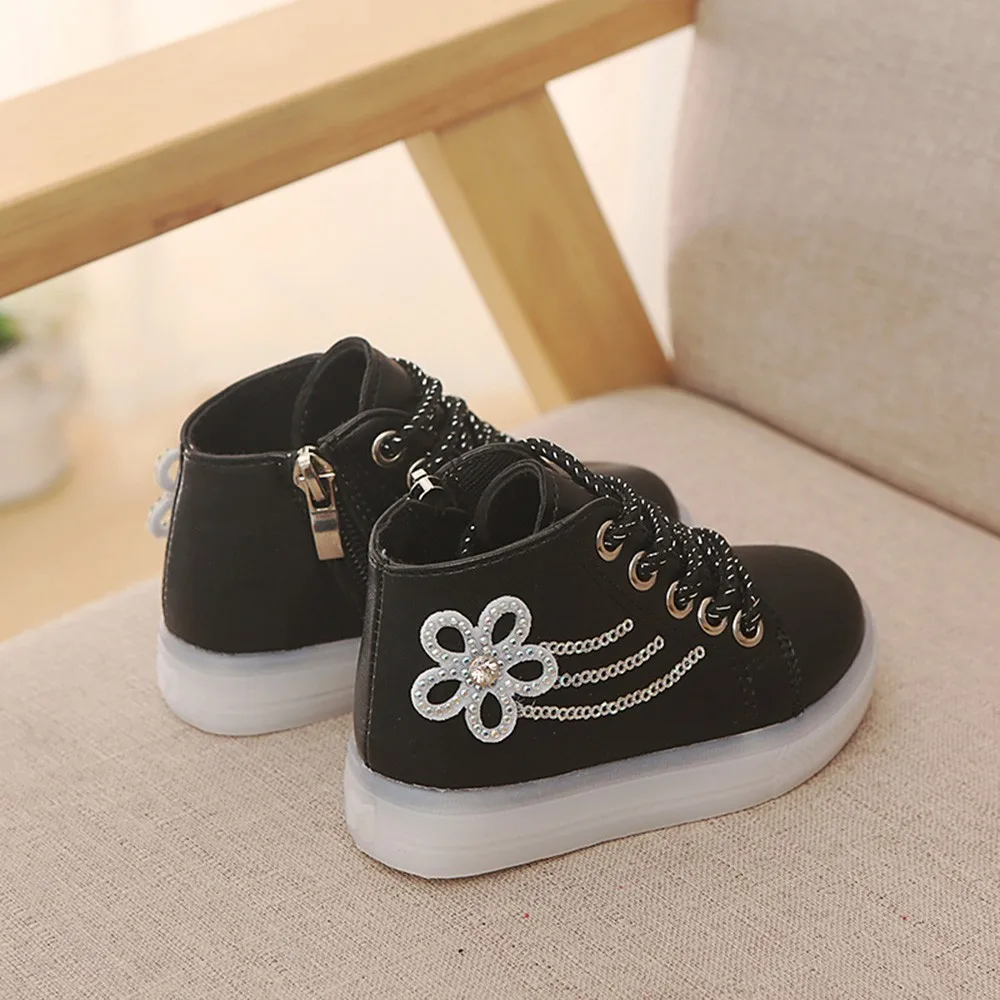 Детская обувь для маленьких девочек с цветами и кристаллами; Светодиодный светильник; Светящиеся спортивные ботинки для бега