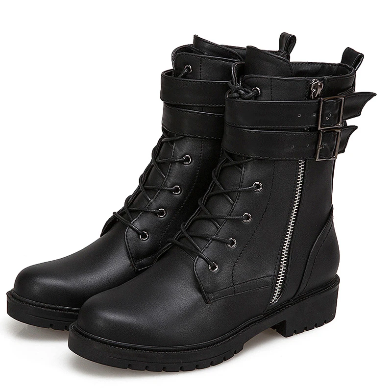 Ботильоны на шнуровке; Женская осенне-зимняя обувь на низком квадратном каблуке; модные женские сапоги для верховой езды на молнии с пряжкой; цвет черный, винно-красный; A337