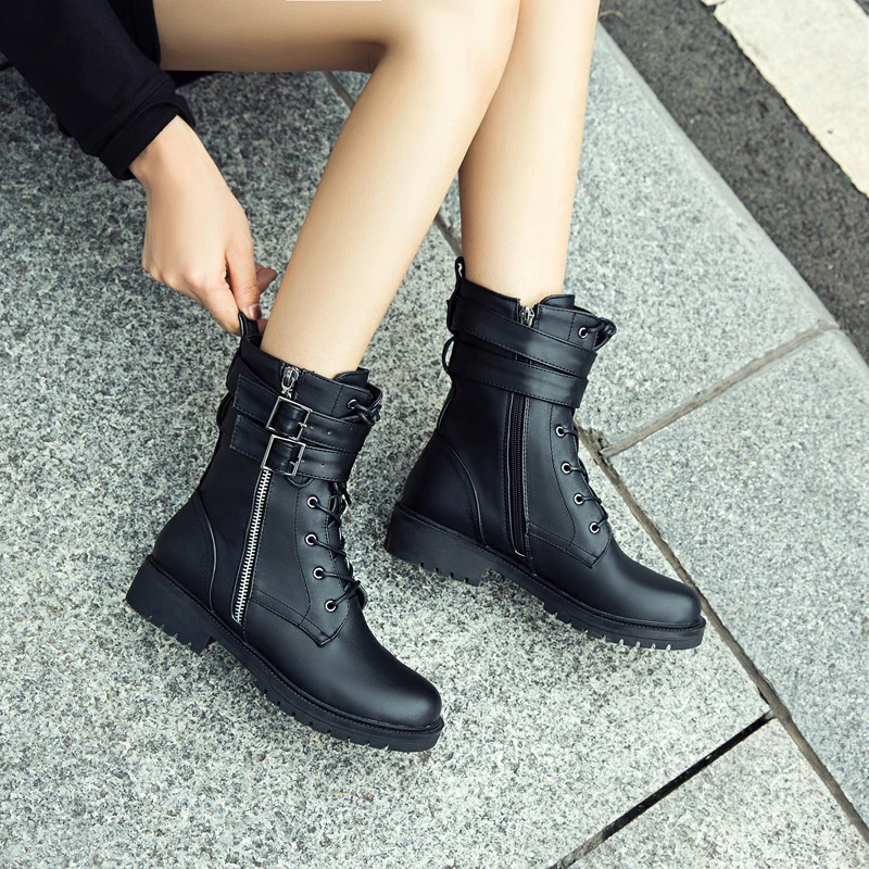 YOUGOLUN/теплые женские из PU искусственной кожи на осень и зиму, крестообразные шнурки-застёжки ботинки «Мартенс»