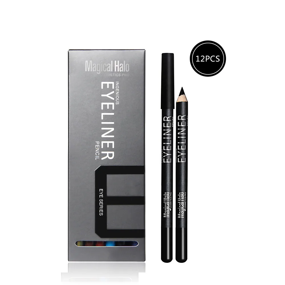 12 Цветов Водонепроницаемый глаз макияж, подводка для глаз карандаш Технические характеристики: 100% новое и высокое качество Цвет: черный Тип макияжа: блестящие тени для век, подводка для глаз и линии губ, карандаш для бровей Особенности: 12 шт./упак. карандаш-подводка для глаз