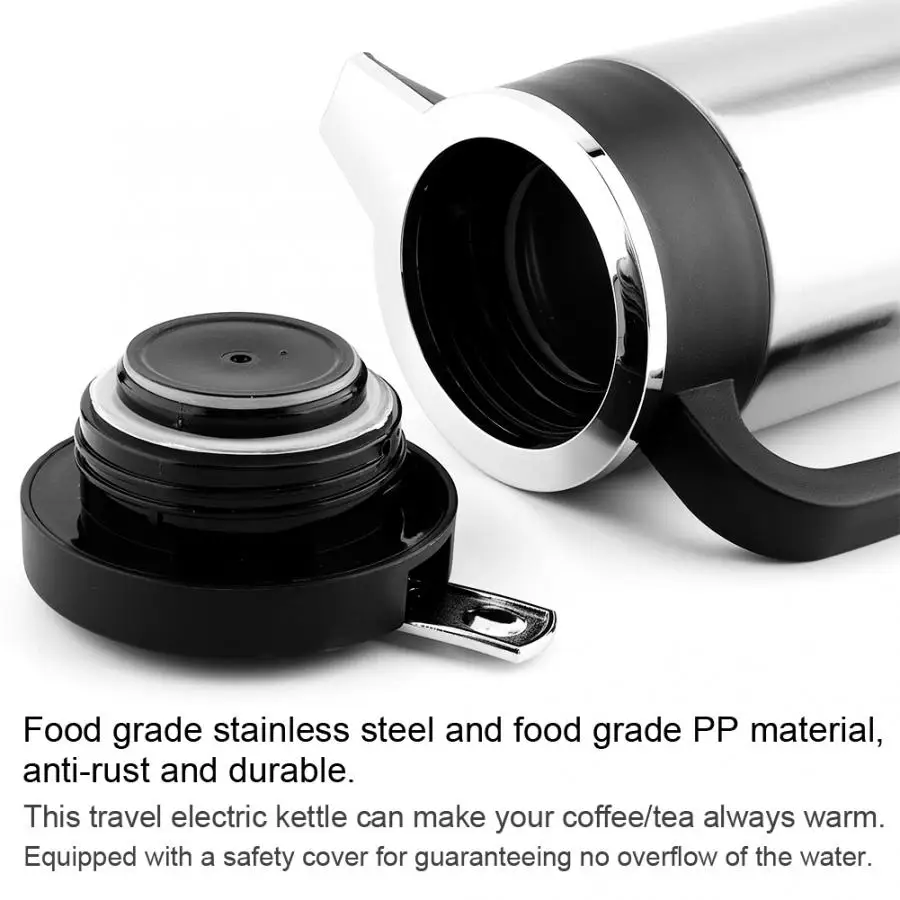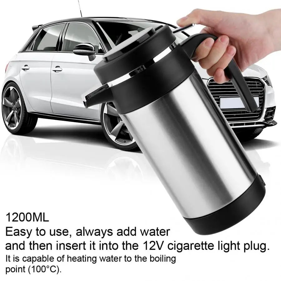 Автомобильный Электрический чайник из нержавеющей стали 1200 мл, термос для кофе и чая, чашка для нагрева воды 12 В