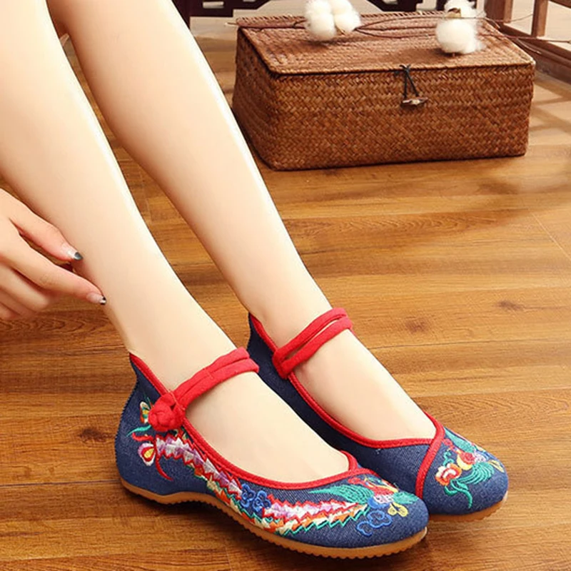Тканевая обувь в китайском стиле с вышитыми цветами Феникса; женские повседневные лоферы на плоской подошве