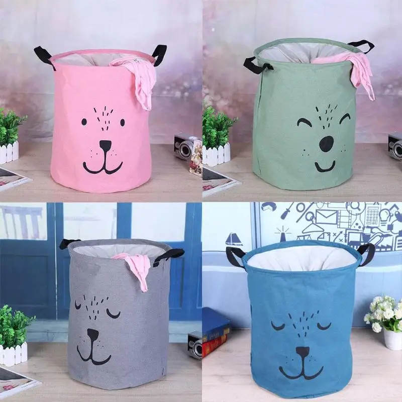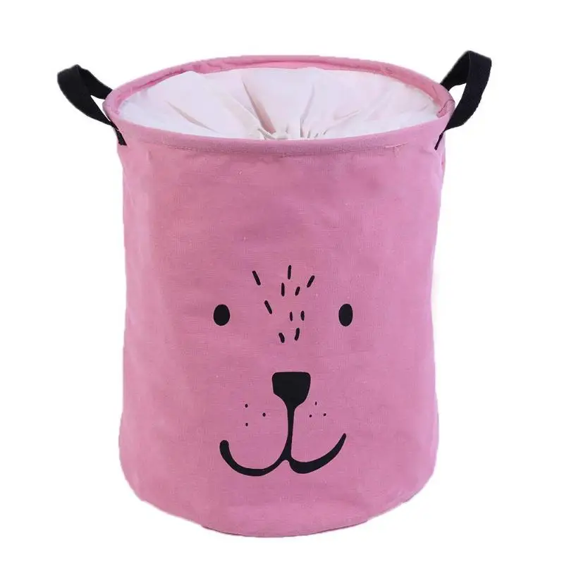 Круглый мультфильм складной Шнурок Водонепроницаемая корзина для белья Влагозащитный стол из хлопка и льна с ручкой для хранения