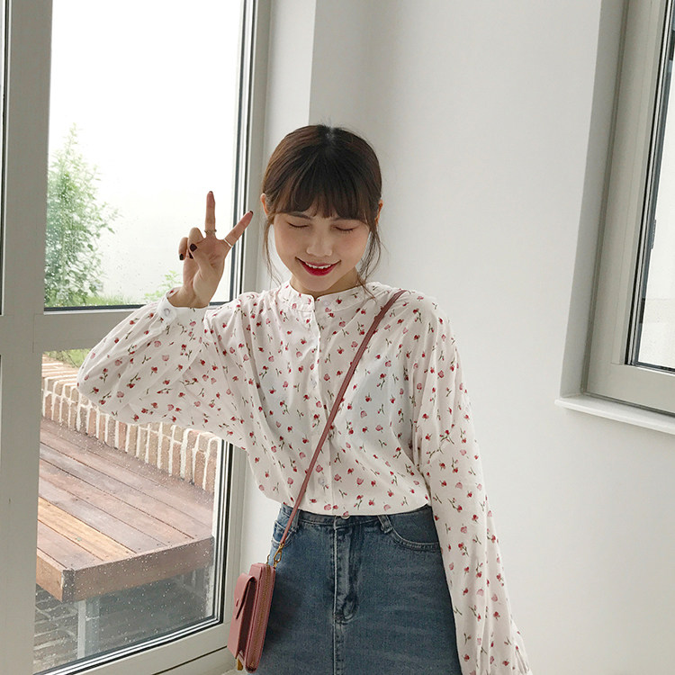 2 цвета 2019 Осень корейский стиль милый цветочный принт длинный рукав рубашка повседневные свободные блузки женские Топы Верхняя одежда Пальто