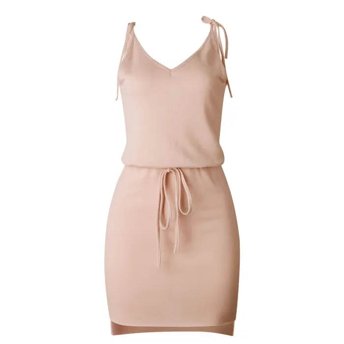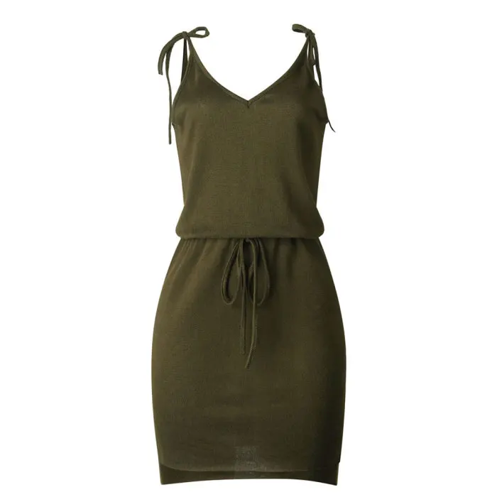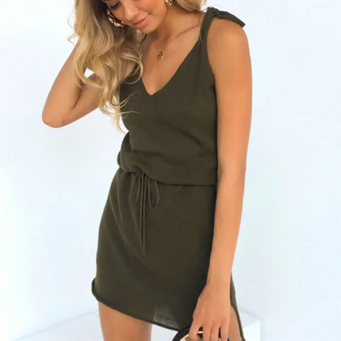 Женское платье на шнуровке с v-образным вырезом, необычное однотонное женское летнее пляжное платье JS26