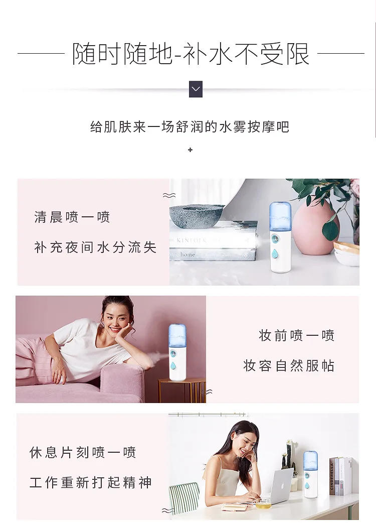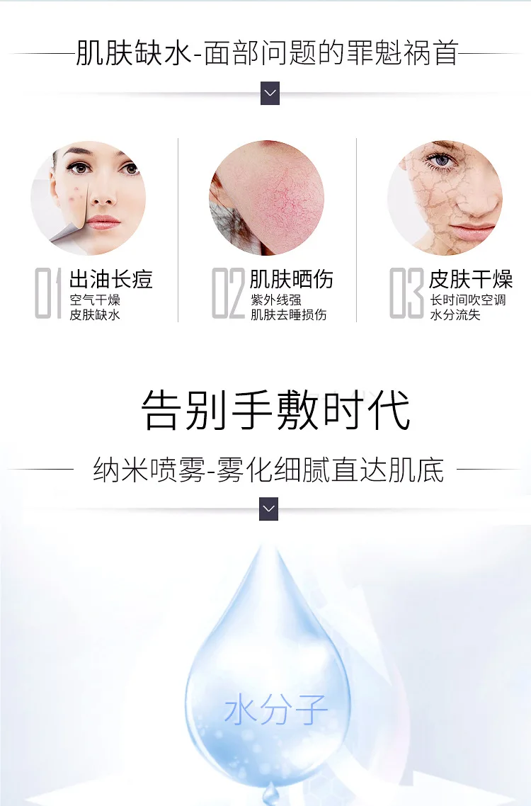 Как правильно очистить кожу: Утро: Шаг 1: Очистите кожу теплой водой с помощью очищающего средства, которое подходит для вашей кожи Шаг 2: Возьмите тонер Шаг 3: распылите кастрюлю с помощью устройства для увлажнения воды, чтобы углубить воду и сузить поры. Так как это холодный спрей, он также может улучшить сопротивление кожи. Особенно эффективно для улучшения кожи. Это также лучше для следующего поглощения. Питание уход за кожей Шаг 4: нанесите эссенцию, лосьон, крем, а затем, наконец, протрите изоляционные и солнцезащитные средства. В дневное время, вы всегда должны использовать счетчик воды для пополнения влаги, например, в помещении с кондиционированием воздуха, под солнцем, когда воздух относительно сухой, когда Открытый ветер относительно большой, чувствовать, что кожа сухая, или время простоя, ничего не распылять В ночное время: Первый шаг: все еще используйте продукты интерфейса, подходящие для вашей кожи, чтобы очистить кожу теплой водой. Шаг 2: Возьмите тонер Шаг 3: распылите два горшка водным гидратором Шаг 4: или намажьте эссенцию, лосьон, ночной крем, а затем распылите кастрюлю увлажняющей водой, что эквивалентно изготовлению маски. Уход за кожей самая основная часть ежедневного домашнего ухода это Чистка, увлажнение, изоляция, защита от солнца, и незаменима Неправильное использование счетчика воды: Миф 1: увлажняющий спрей образует капли воды на лице. Оставайтесь как можно дольше. Обычно после распыления увлажняющего спрея мы аккуратно похлопываем лицо кончиками пальцев, чтобы кожа лучше впитывала влагу. Однако, когда влага испаряется, кристаллы соли, остающиеся на поверхности кожи, будут поглощать воду изнутри и снаружи кожи, но будут отводить влагу внутри кожи, так что для того, чтобы лучше увлажнить, не дайте воде капнуть на лицо в течение длительного времени.! Миф 2: после распыления спрей, дайте распылению высохнуть естественным образом. Общий увлажняющий спрей не имеет значения, погладьте его, чтобы помочь ему впитаться. Если это паровой спрей, нажмите на лицо бумажным полотенцем примерно через 20 секунд, чтобы высушить излишки воды, В противном случае она отнимет влагу самой кожи и сделает ее сухой. Поскольку пар, как правило, имеет низкое напряжение, он не легко впитывается кожей и остается на лице, что ускоряет потерю влаги с кожи. Недоразумение 3: спрей гидратация является аварийным, контроль без трения других средств по уходу за кожей Конечно, вам нужно масло для гидратации, и это действительно хорошо, чтобы зафиксировать воду, блокируя влагу в клетках кожи. Поэтому, если вы находитесь в офисе, вы можете добавить освежающий увлажняющий лосьон или крем, чтобы не только удваивать эффект увлажнения, но также сушить сухую и сухую кожу в сухих осенних и зимних кондиционированных комнатах. Далеко. Миф 4: не может распылить после макияжа, макияж Не используйте спрей после макияжа, это, безусловно, недоразумение в неправильной зоне. Вы должны знать, что многие учителя по макияжу и макияжу используют увлажняющий спрей для фиксации макияжа и увеличения увлажнения кожи после макияжа, чтобы эффект макияжа был лучше. Однако после макияжа лучше использовать небольшой и плотный спрей с капельками воды (гидратационный счетчик дракона более идеален), в конце концов, это «фонтанный» спрей, или это будет макияж. Миф 5: чем ближе рас