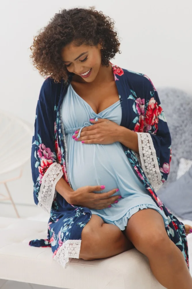 Женская ночная рубашка с цветочным принтом для беременных ночная рубашка для беременных пижамы кимоно халат ночная рубашка пижамы одежда