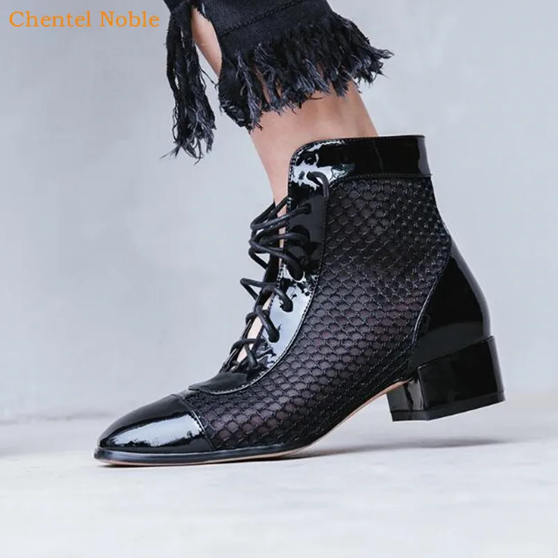 Бренд Chentel/сетчатые ботильоны для женщин на среднем каблуке; черные высокие сапоги с перекрестной шнуровкой для подиума; коллекция 2019 года; сезон лето-весна; Zapatos