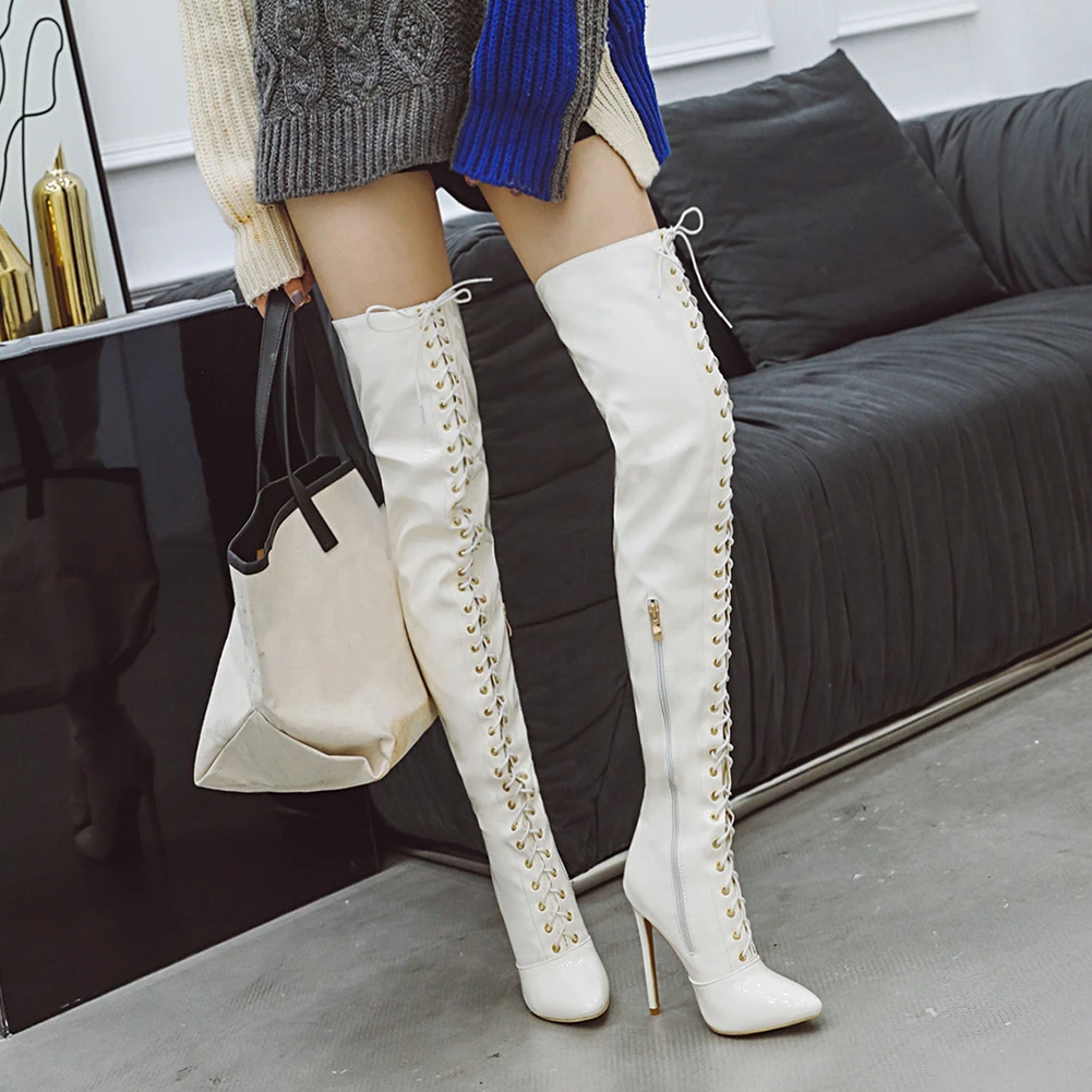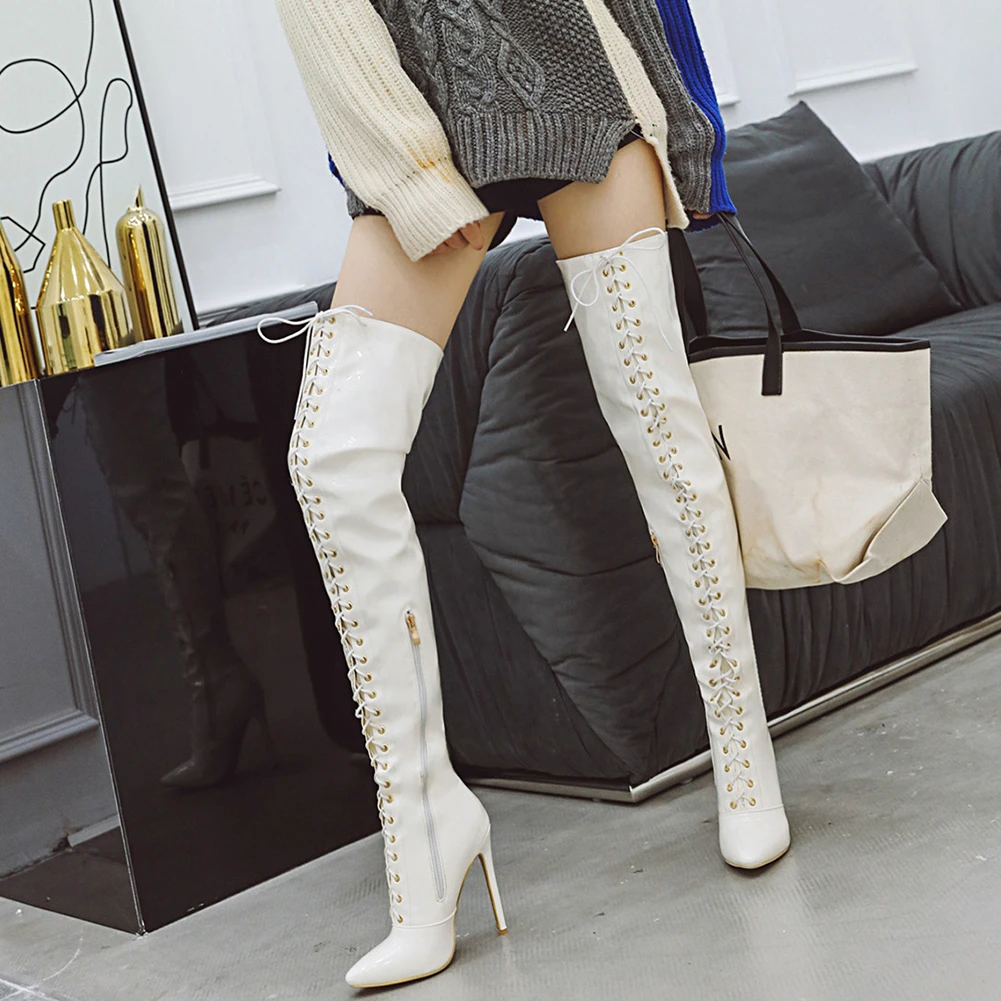 Женские высокие сапоги Сапоги выше колена Стрейчевые вязаные носки на массивном