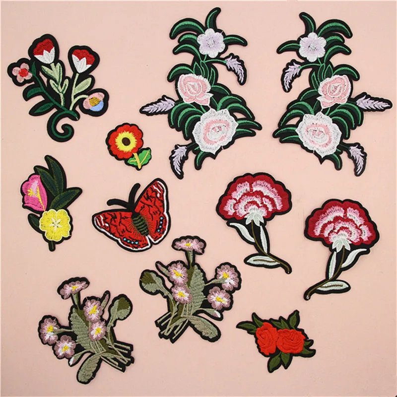 Вышивка утюгом нашивки для одежды джинсы красные розы цветы значки панк мотив аппликация, аксессуар для DIY наклейки на одежду