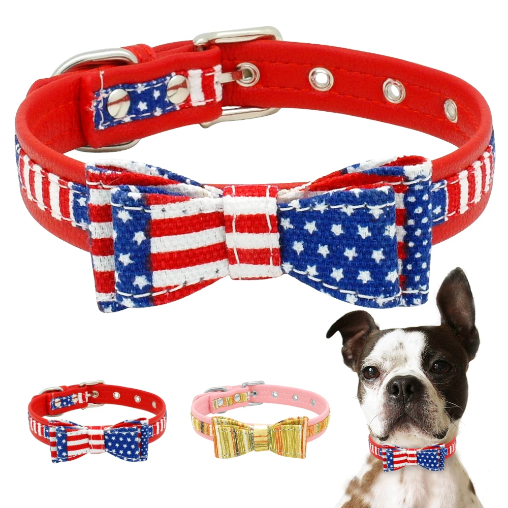 Ошейник с бантом для собак в американском стиле, мягкий ошейник для щенков, кошек, котят, бантик, регулируемый воротник, ожерелье в полоску со звездами, аксессуары