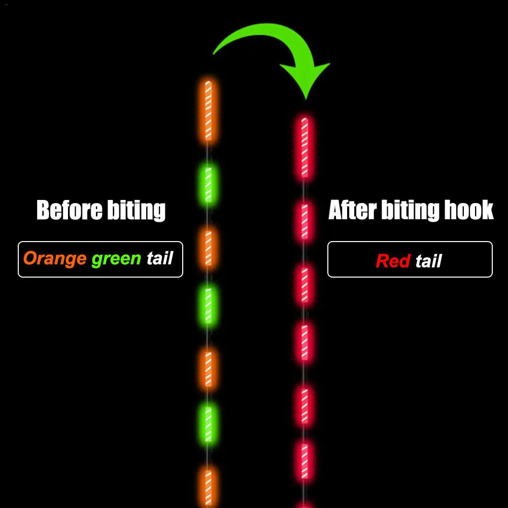 Характеристики: дизайн светящегося хвоста с 5 глазами, светильник заметный и четкий, это крючок для укуса, меняющий цвет, яркий, три глаза, прежде чем электронная загрузка будет зеленой, после того, как крючок станет красным