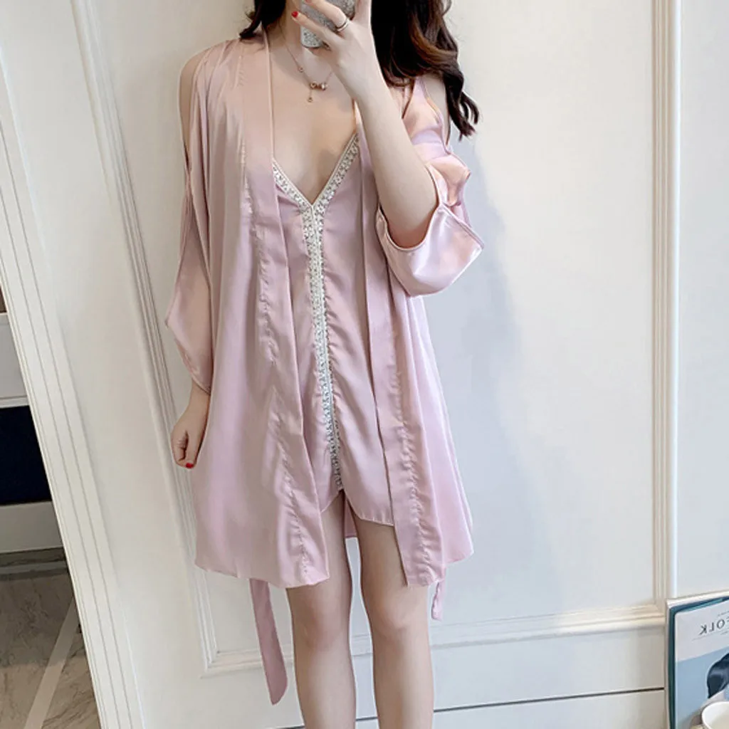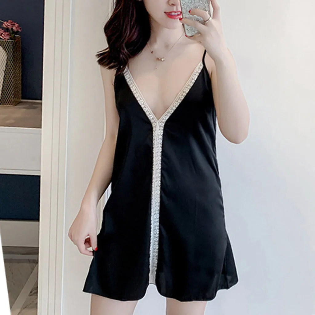 Женская пижама, сексуальное нижнее белье с v-образным вырезом, ночная сорочка на бретельках