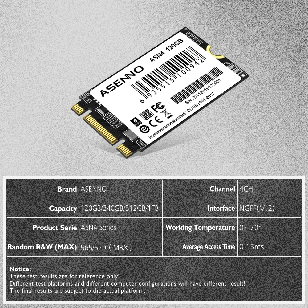 Твердотельный накопитель Asenno M.2 SSD 2242, 1 ТБ, 120 ГБ, 240 ГБ, 500 Гб, M2 SATA, 512 ГБ, жесткий диск для ноутбука