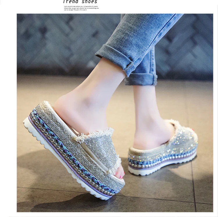 Тапки женские на толстой подошве модные пляжные шлепанцы для улицы домашняя