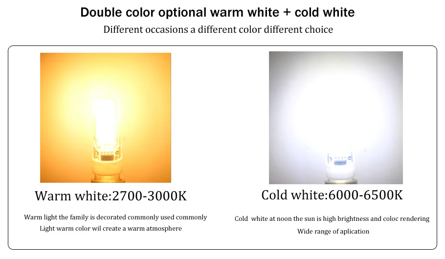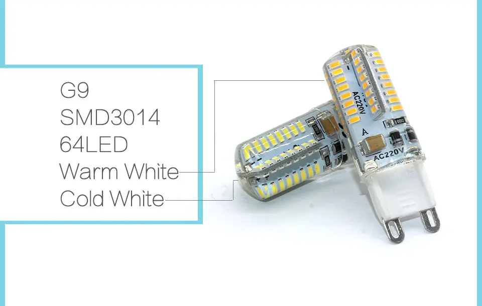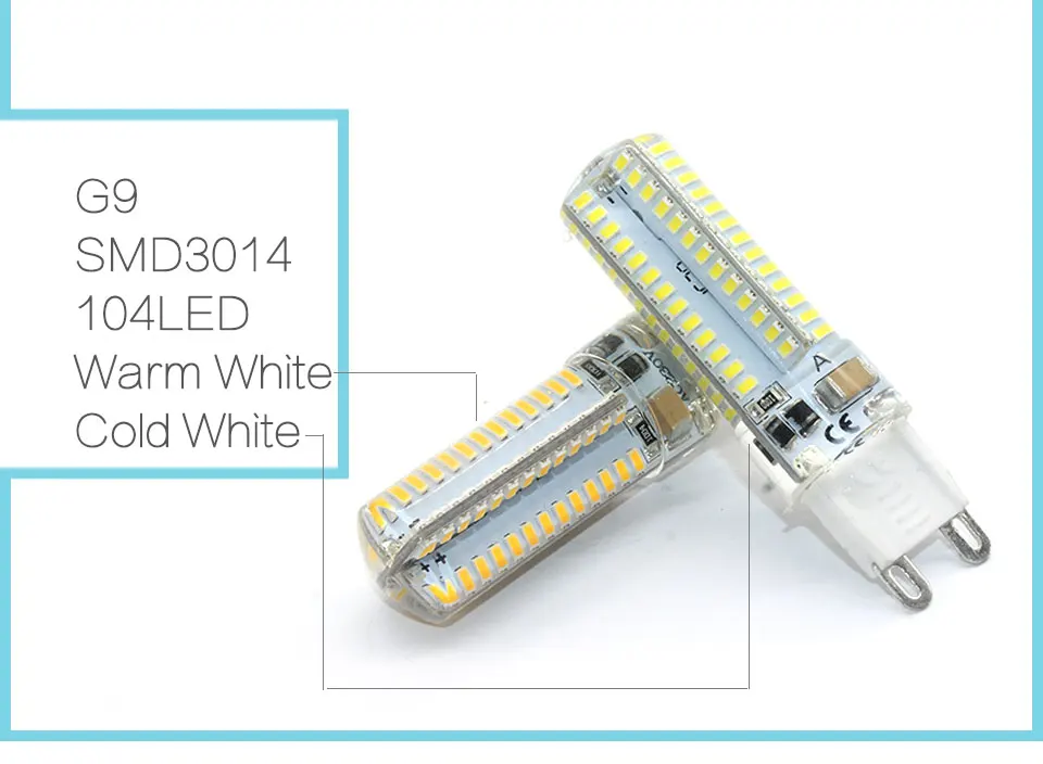 Особенности: Светодиодный Кол-во: 24/46/66/48/64/96/104 шт (3 Вт/7 Вт/9 Вт/10 Вт/12 Вт) Напряжение: 12 В/220 В переменного тока Длина: 36 мм-60 мм Диаметр: 10 мм-16 мм Тип разъема: G4/G9 Угол освещения: 360 Материал: высококачественный прозрачный силикон Светодиодный модель чипа: SMD 3014 или SMD 2835 или SMD 4014 или удара Цвет: теплый белый/холодный белый Цветовая температура: теплый белый 2800-3200 K Холодный белый 6000-6500 K Размер: 54 мм-61 мм * 16 мм (длина * диаметр) > Применение: Для помещений, коридоров, офисов, ресторанов, кухонь и другого внутреннего освещения > Место происхождения: Гуандун, Китай (материк)