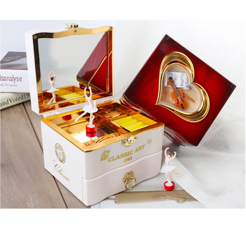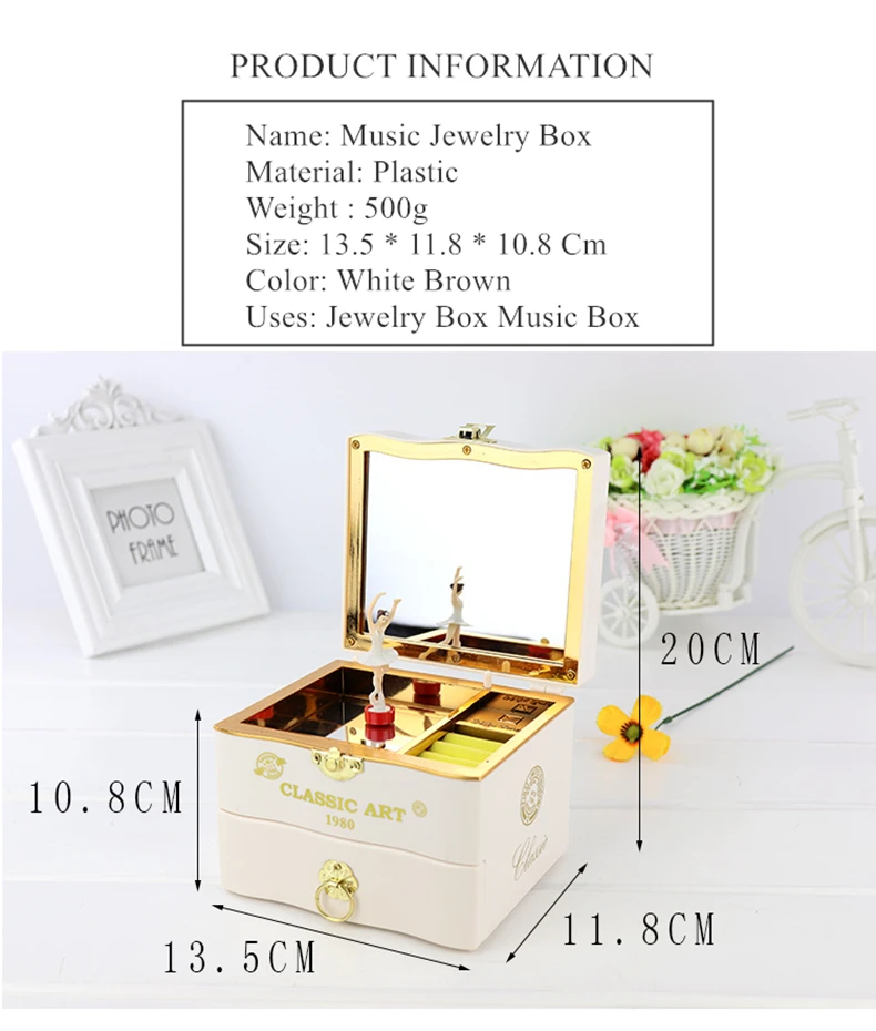 2019 New Jewelry Storage Box Rotating Dancer Music Box Jewelry Drawer Organizer Mechanism Christmas Gift Girl Birthday Present
