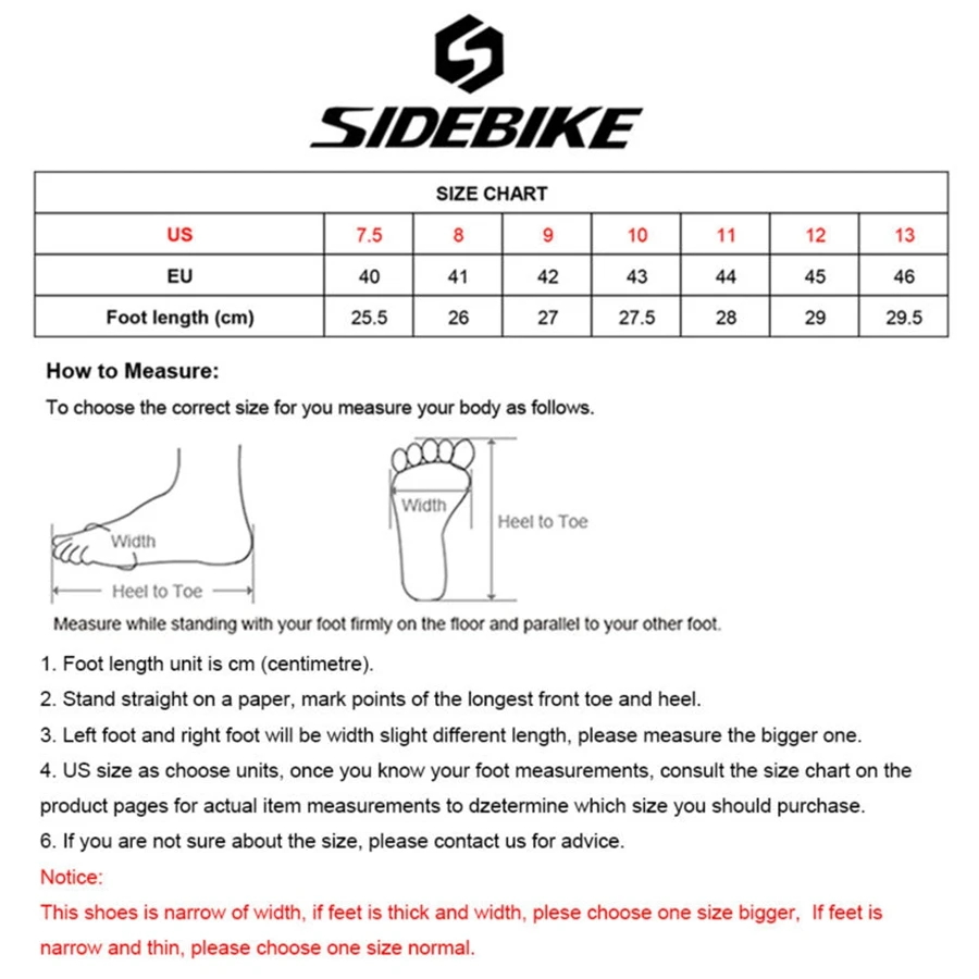 Бренд: SIDEBIKE Подходит для: взрослых Материал: 1. Ткань: 1,2 мм воздухопроницаемая ткань из микрофибры 2. Внутренний каблук: лайкра 3. Подошва: нейлон + ТПУ превосходная прочность на сжатие 4. Пряжка: функция двойной регулировки 5. Стелька: дышащая Упаковка включает: 1 пара велосипедных туфель (мы не отправляем обувные коробки)
