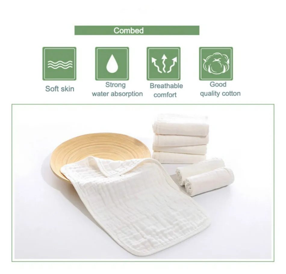 Чесаные хлопковые марлевые полотенца, 4 упаковки, детские марлевые полотенца из чистого хлопка для младенцев, одноклассное белое квадратное полотенце