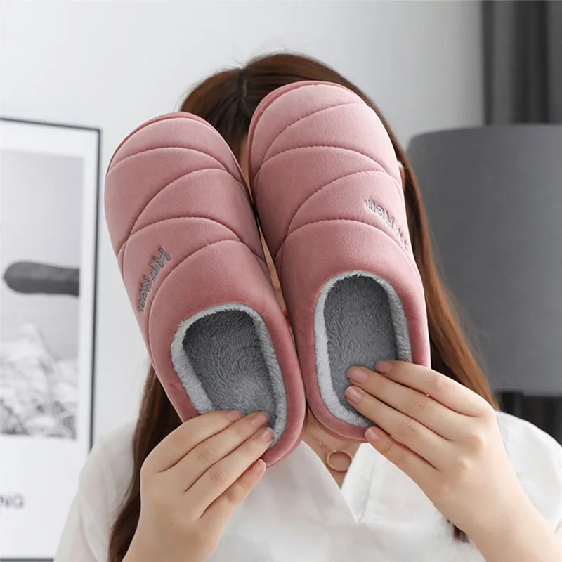 Dropshipping Women Winter Home Slippers Cartoon Letter Shoes Soft Winter Warm House Slippers Indoor Bedroom Lovers Couples
